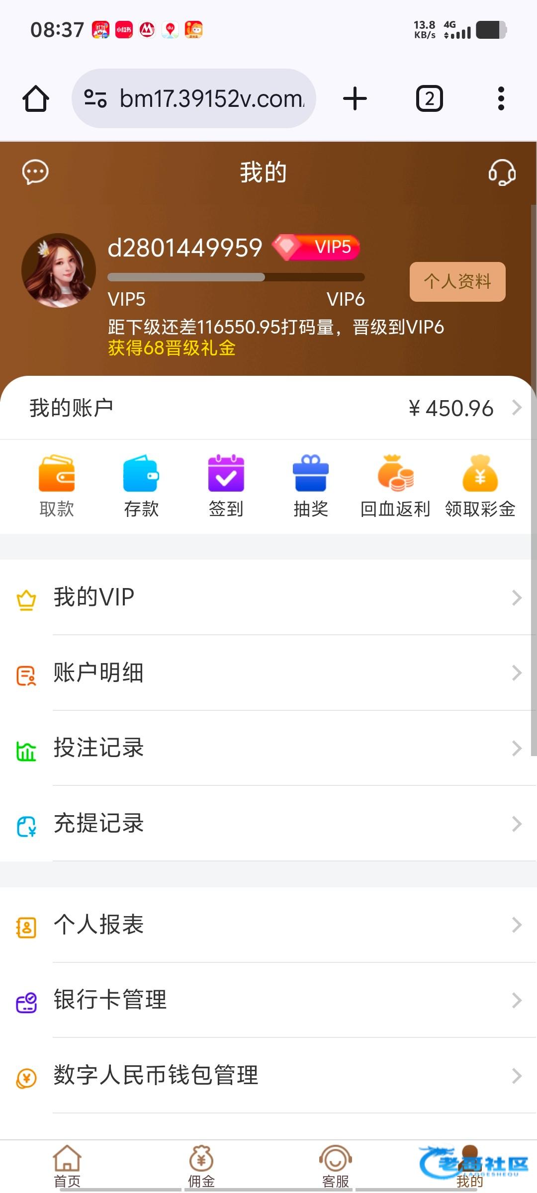 V5的账号,周彩金打出来450要求充值同等金额,这个平台提款应该不黑,有没有老哥来合作的,让你打一倍流水,利润55分