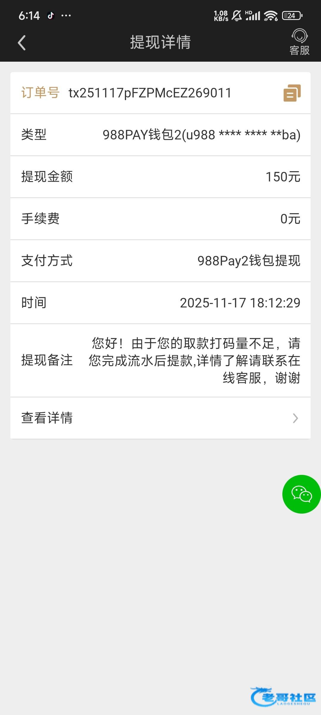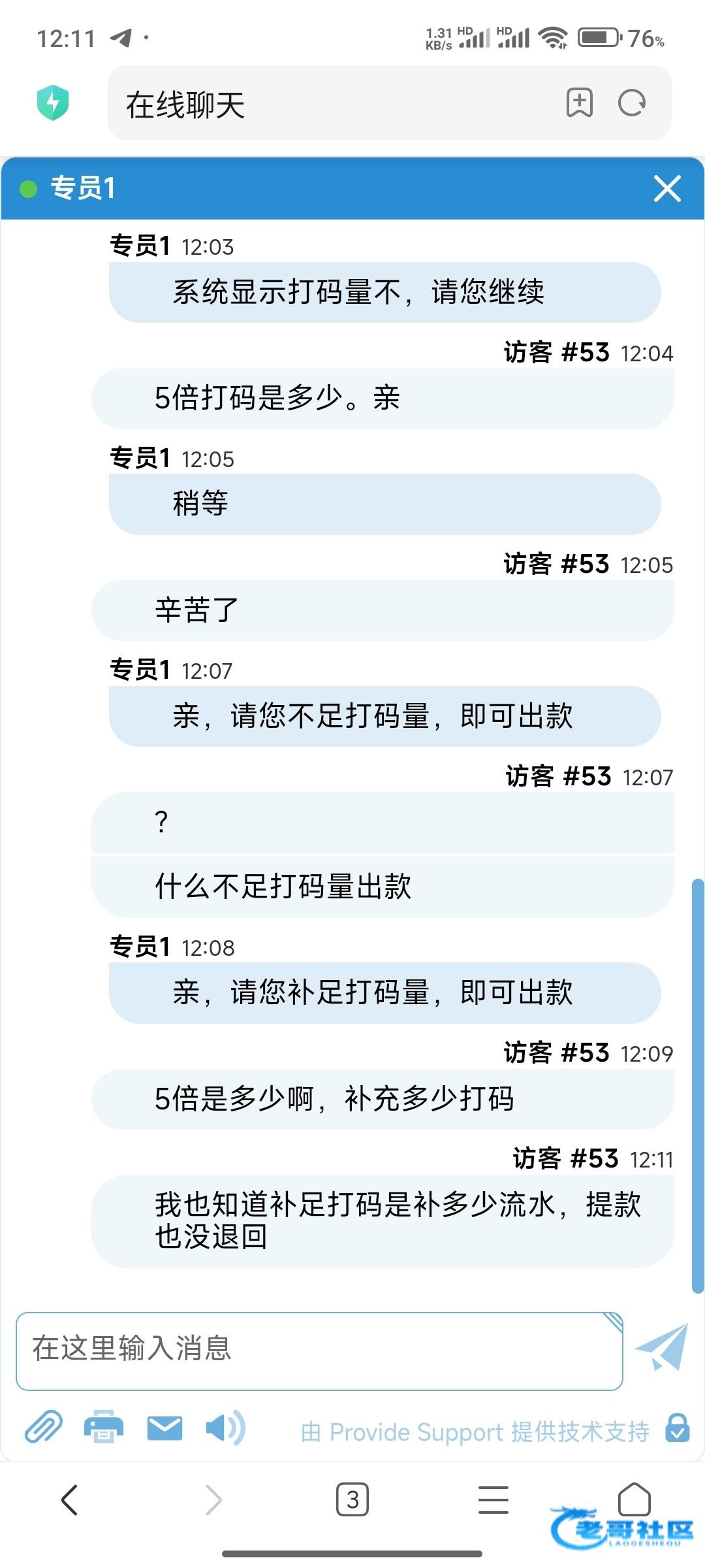 这傻逼客服也不说多少出款就说5倍流水,打够了也说打码不够…叫你补充打了500肯定不能出款的