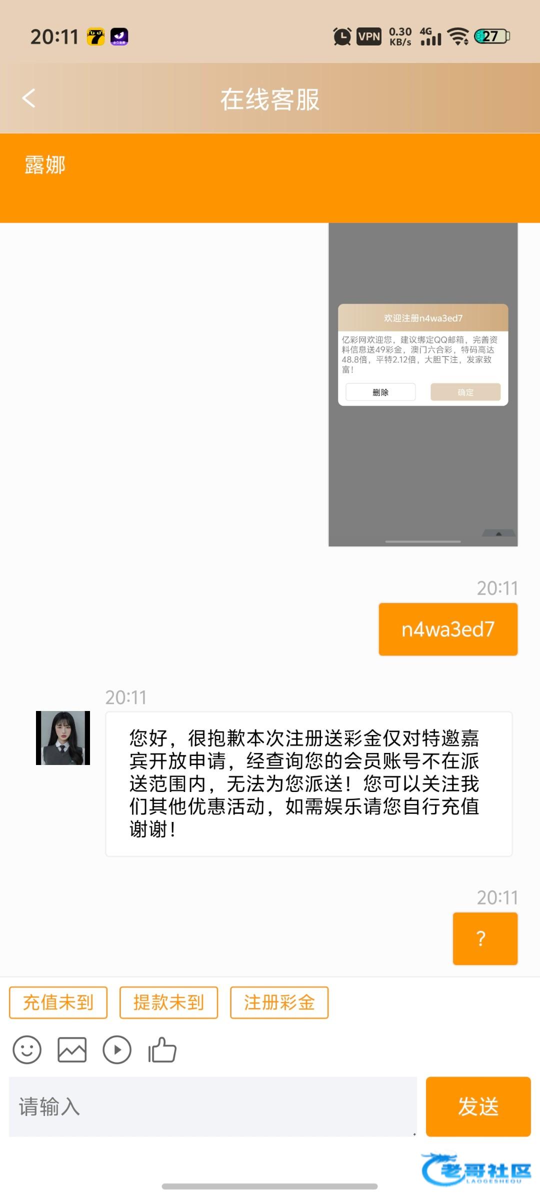20:15您好,很抱歉本次注册送彩金仅对特邀嘉宾开放申请,经查询您的会员账号不在派送范围内,无法为您派送!您可以关注我们其他优惠活动,如需娱乐请您自行充值谢谢!