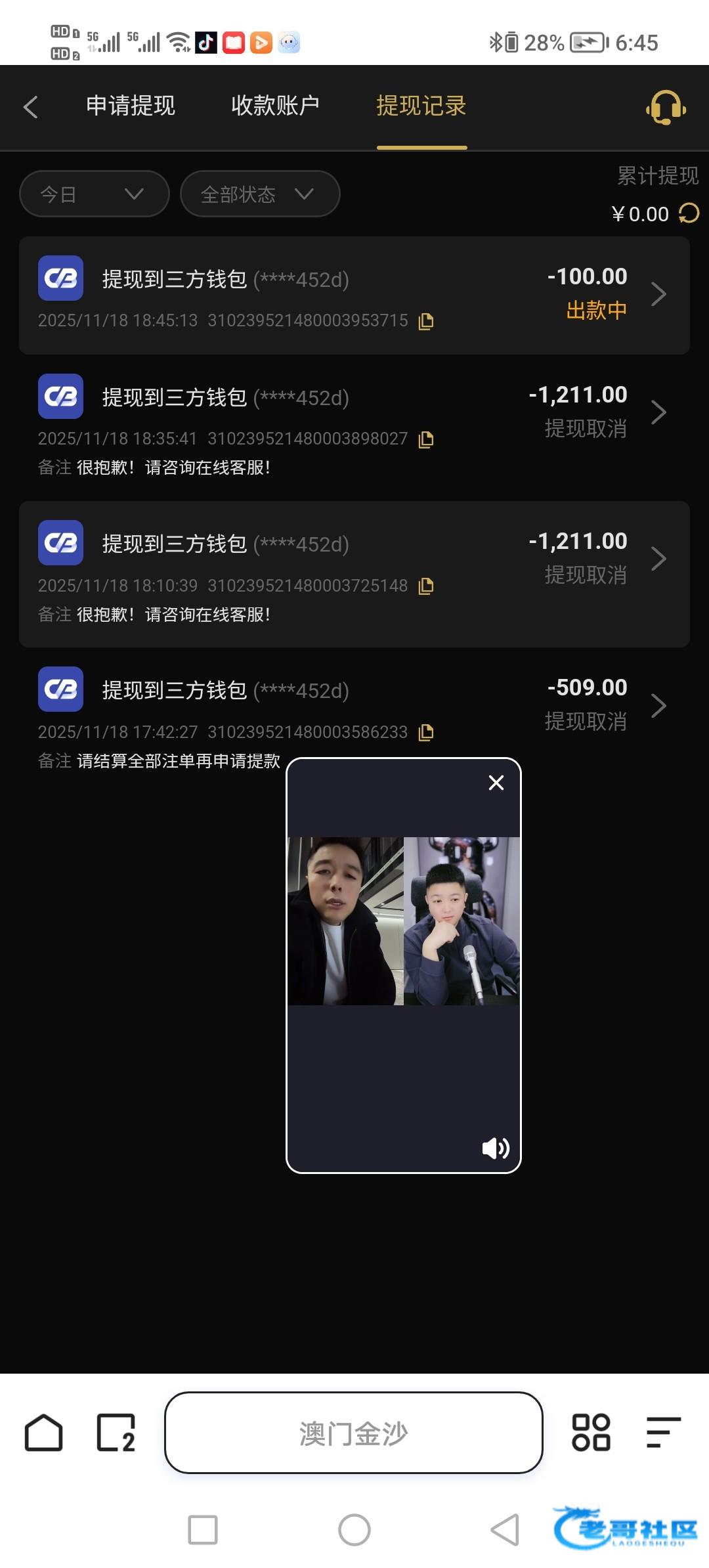 刚才提了四百,一直不到账,也没退回,客服也打不开,老哥们你们能打开客服吗