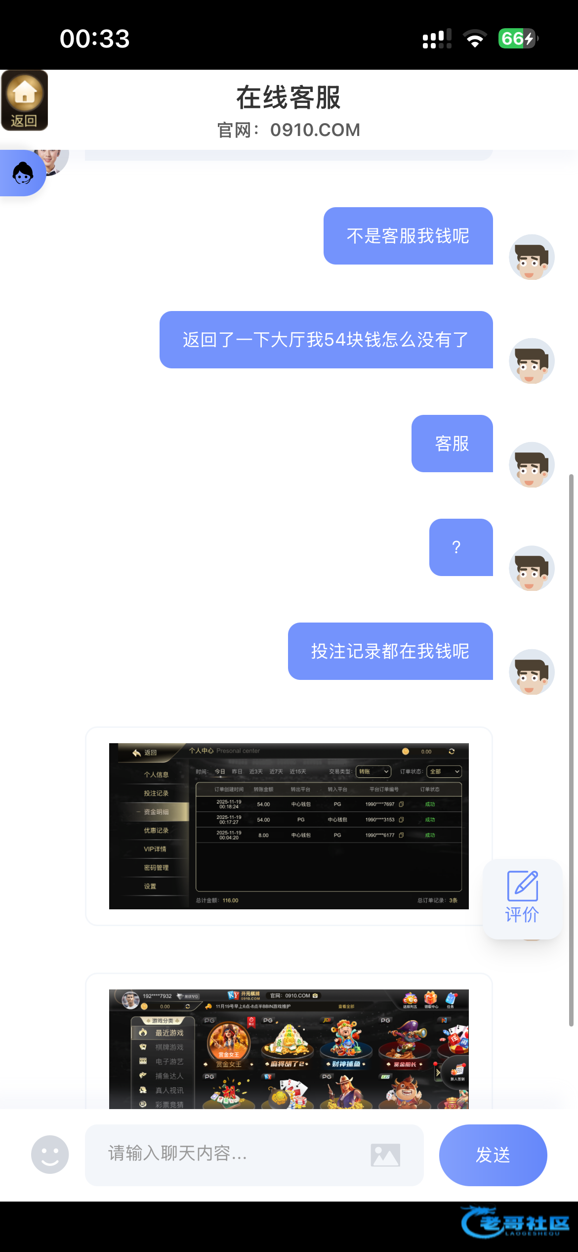 在任务领了8彩金,打女王打到54,回了一下朋友消息回到游戏他显示转账,自动开了女王以后发现钱没了,问客服半天不回复,傻逼台54也要吞,中出客服