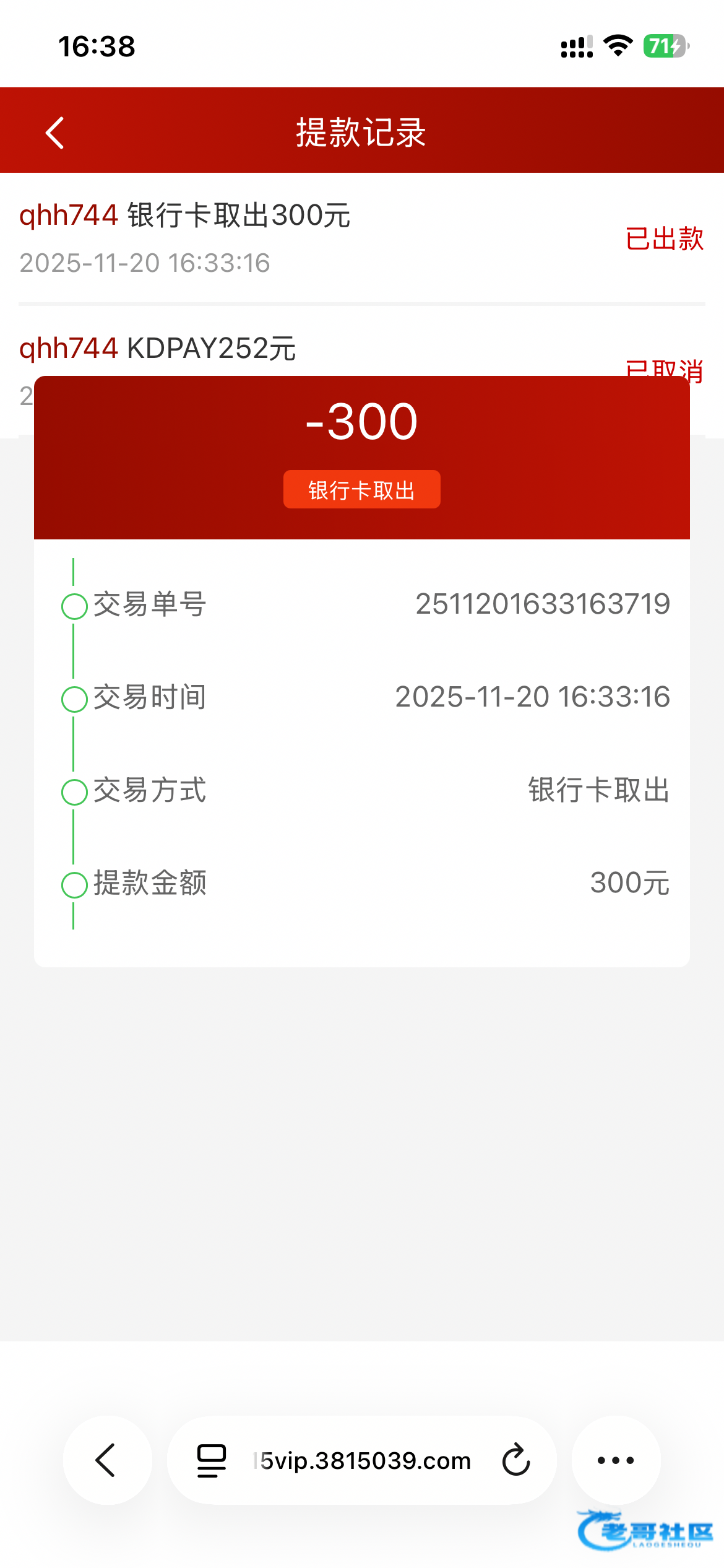 老哥你到账了吗?到了的话是怎么给你转的啊?500一直不敢提卡,