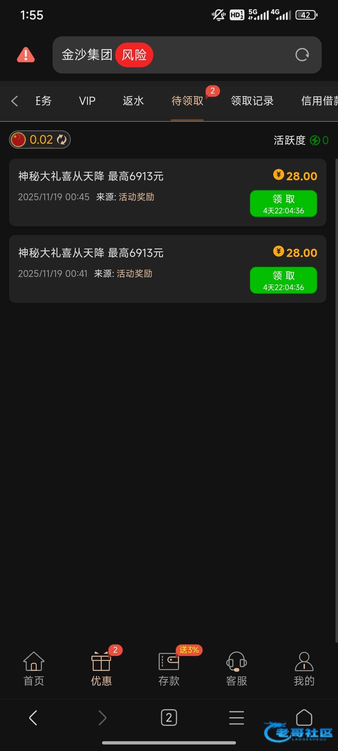 亲,经查询您账号长期未有记录充值 导致您未能领取彩金哦,目前请您正常充值下注即可领取,谢谢