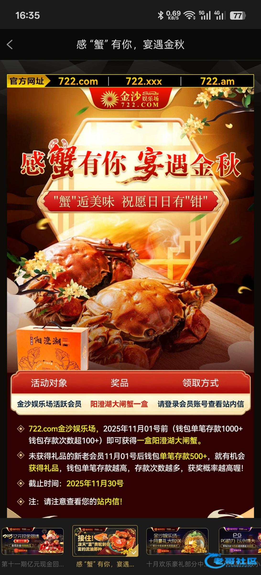 昨天看见你帖子,昨晚上500提1400,今天就给我大闸蟹了