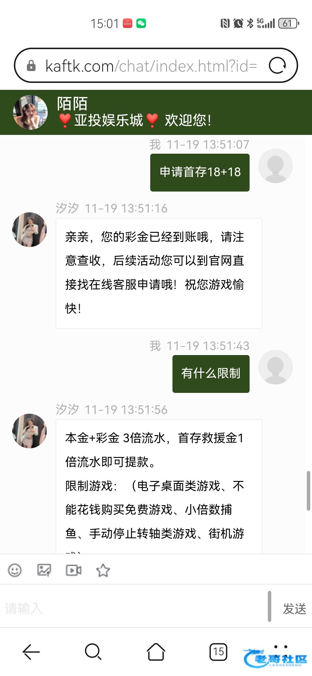 今天早上没注意追尾人家车,身上就剩20留着买烟的,绝境之下亚投电话打来特邀18+18,想着搏一搏,没想到真出款500赔人家400,自己留100吃饭抽烟