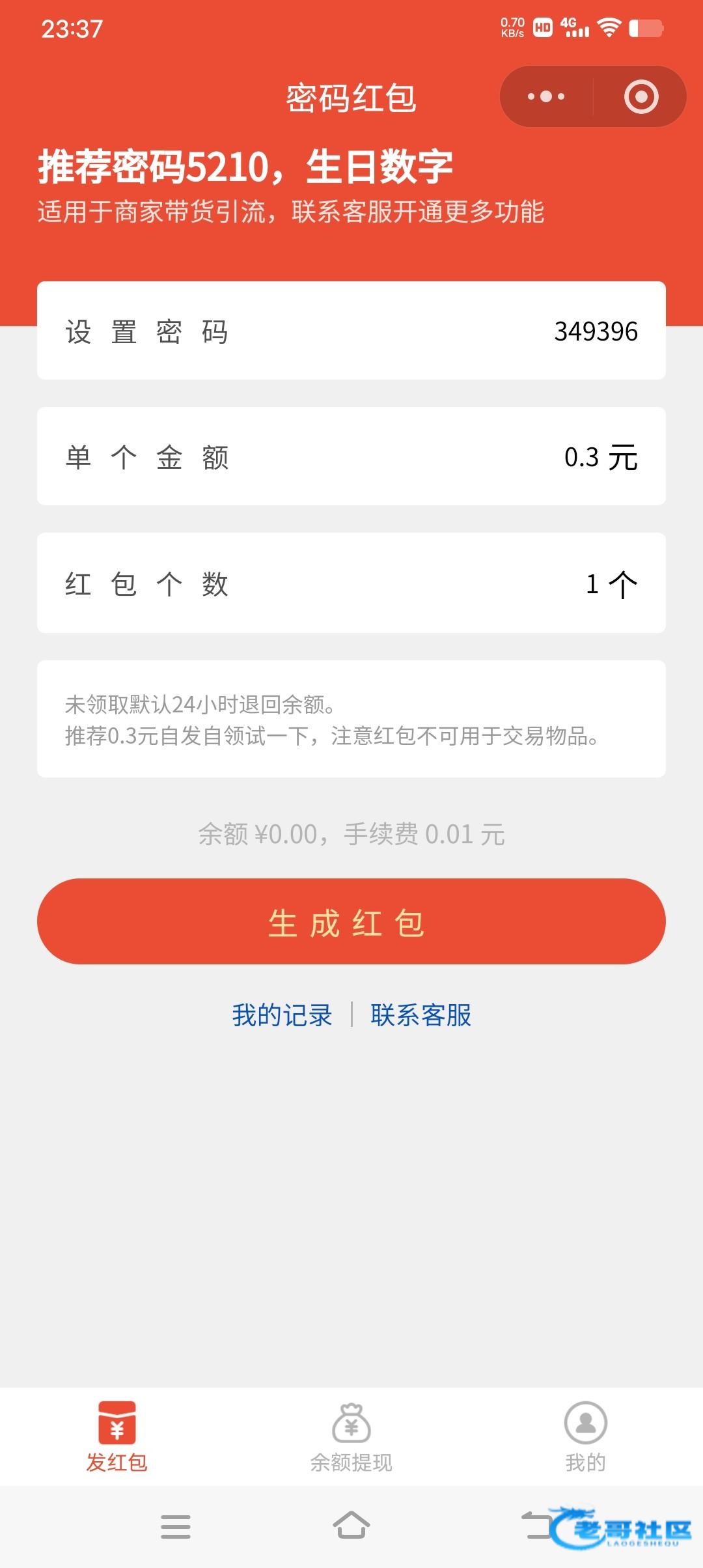 微信小程序密码红包,发红包自己领在提现就可以了,第一发不了50,第二次发就行了,有几毛钱手续费