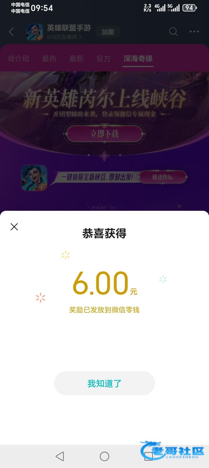 每人一瓶牛子 打开微信 点游戏进去搜索英雄联盟,点进去向右划找到深海奇缘活动下载注册就可以返回微信领6,还有好多下载注册送现金的