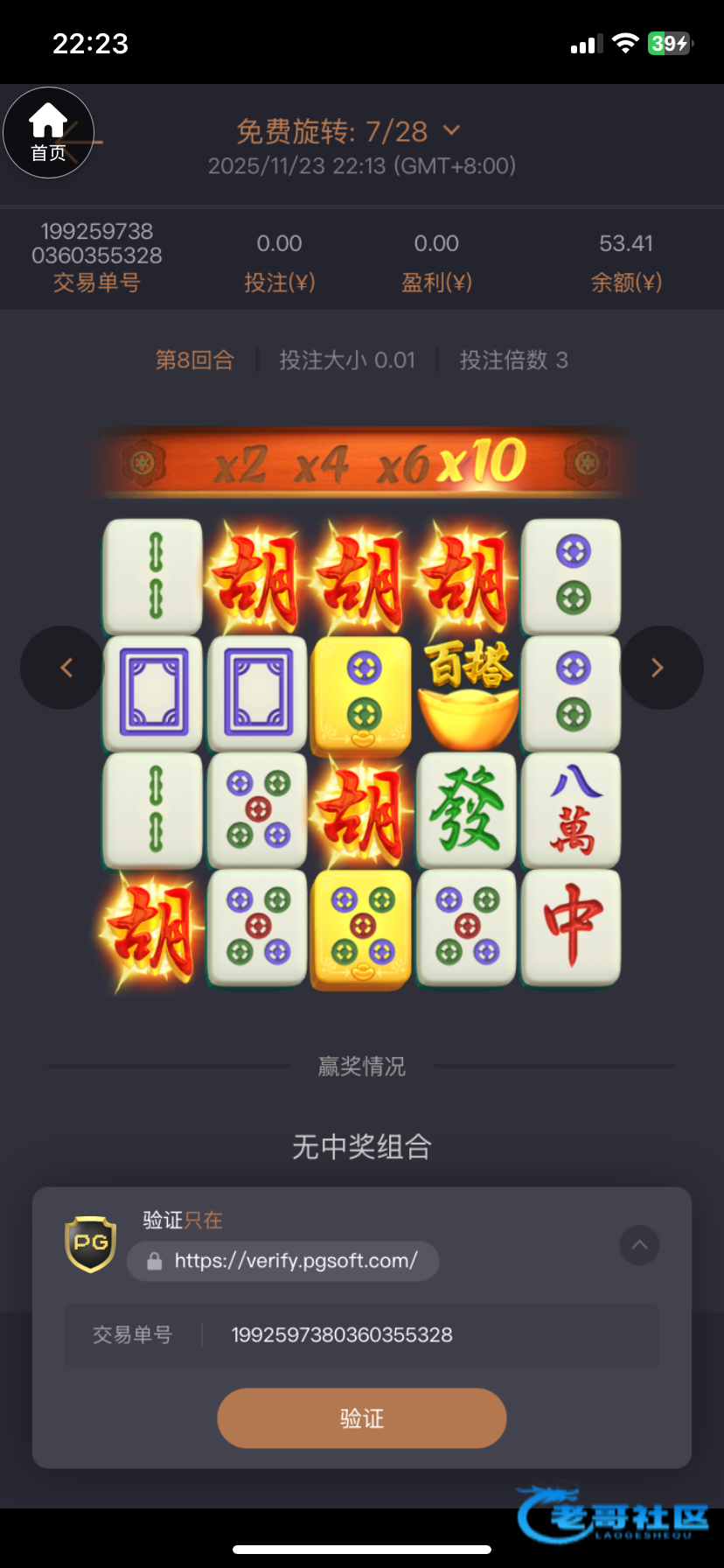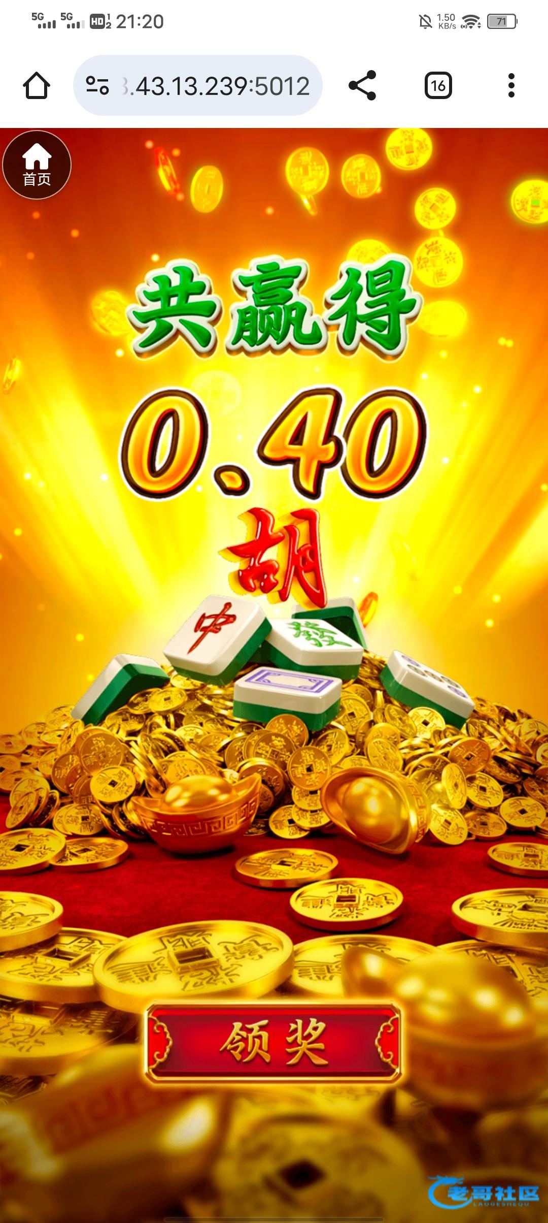 虽然说没领到要充100才能领但是充了10玩进了个胡中胡下了160