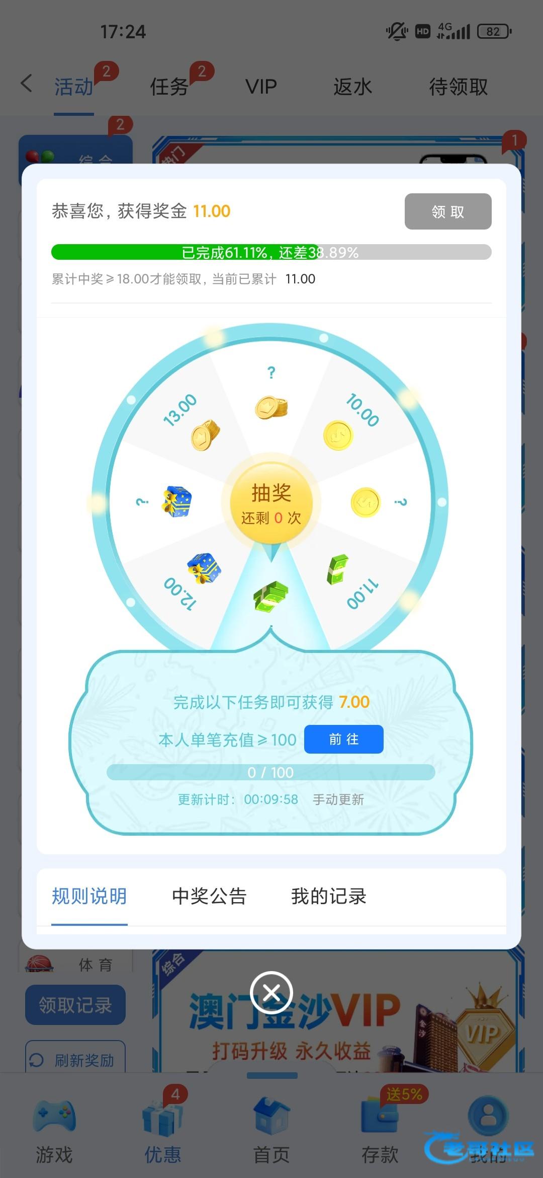 存了100打了5400流水,总于的吃下分800,反水还有70多