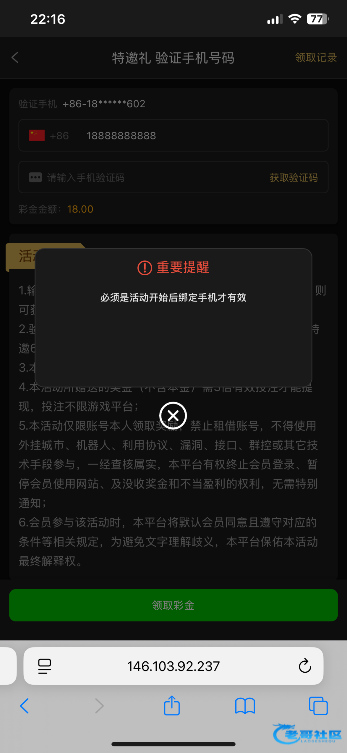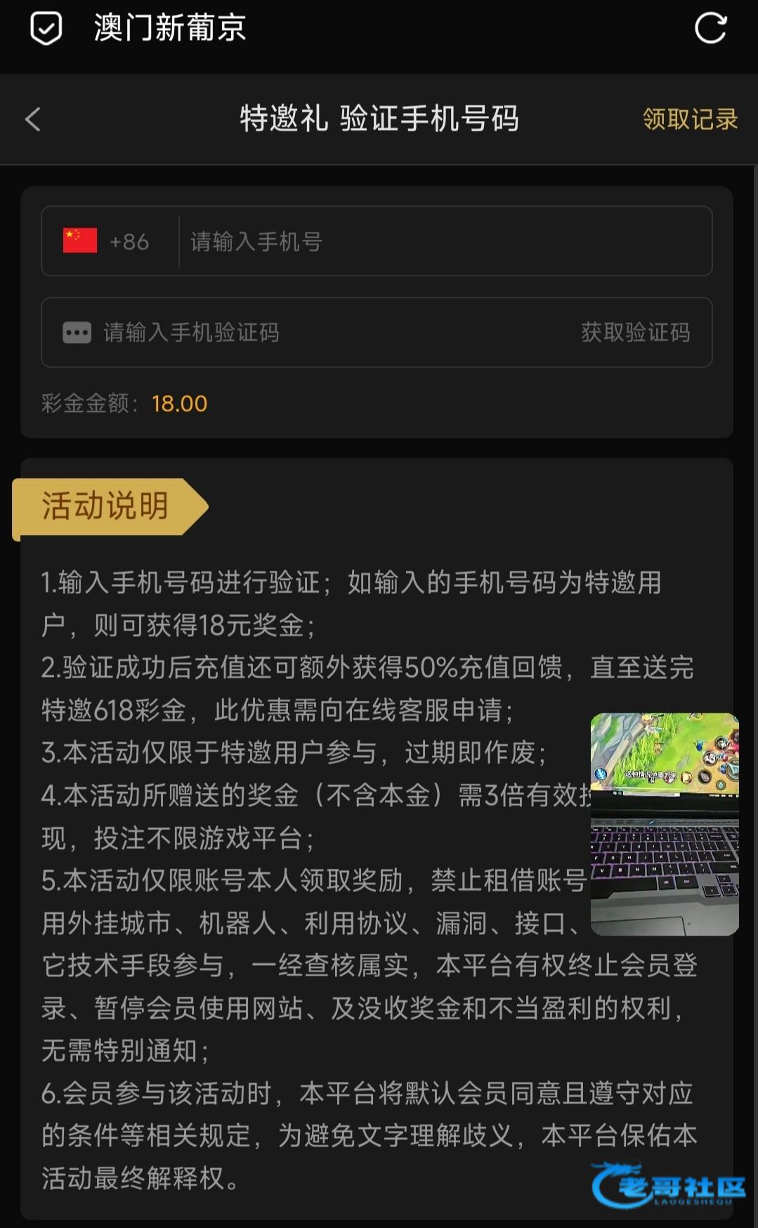 这个台子之前推出过此类活动(我之前帖子有发),被老哥们撸废之后停了,现在又开了,我是活动开始之前就绑定了手机领不到,新注册老哥们去碰碰吧