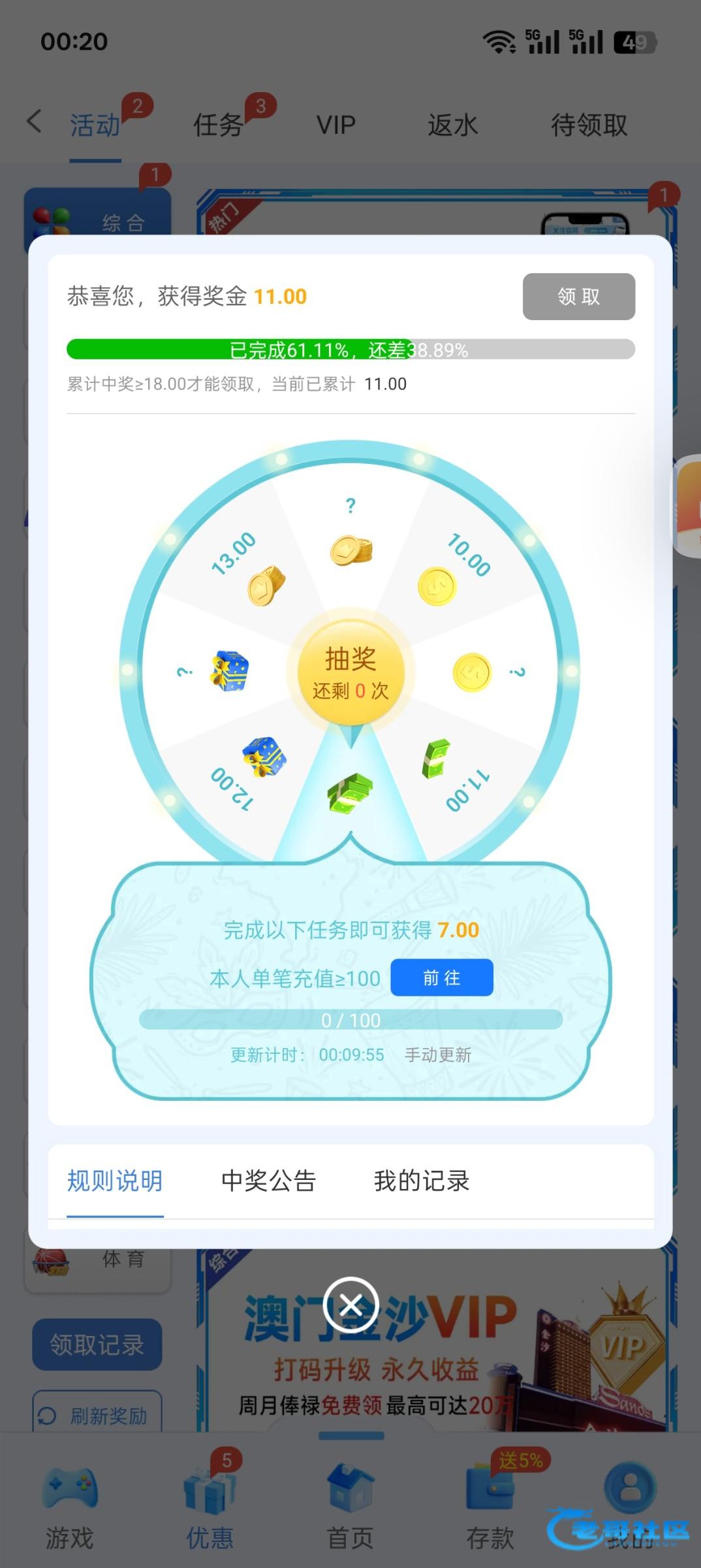 另一个号要充过一百才可以领取