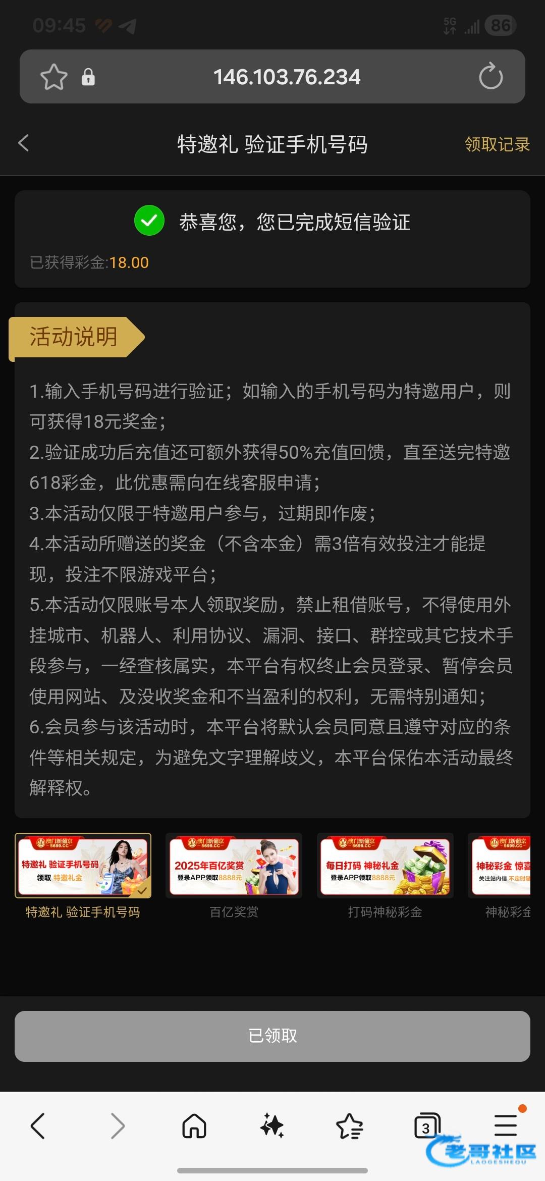 (之前有号可以去安全中心把手机号改了重新注册)5699.cc 短信特邀彩金。