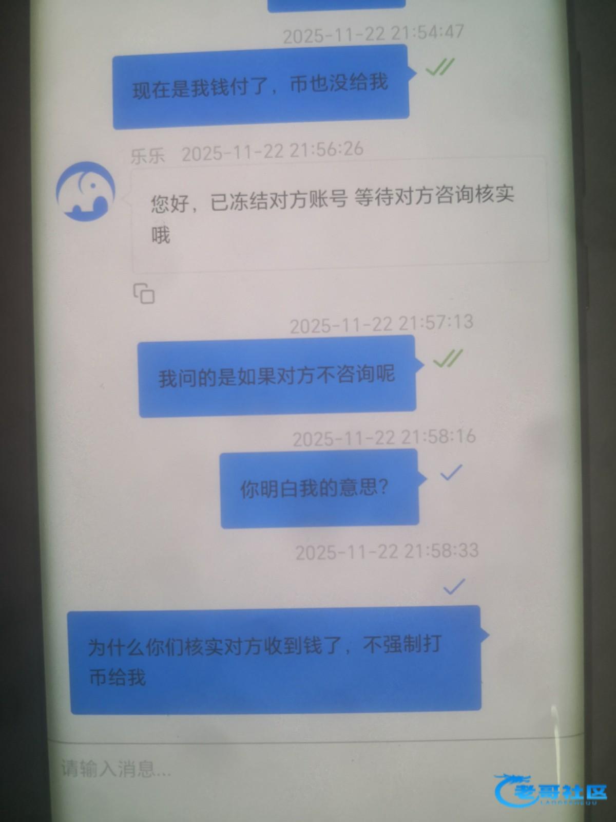 有次我ok买币付了1000那个煞笔截图就是上传不了,过时间之前我就和客服说了,然后冻结对方账号,但是就不给我划币!他妈的天天问都是说等联系上对方!后面过了一个多月才给我划币,