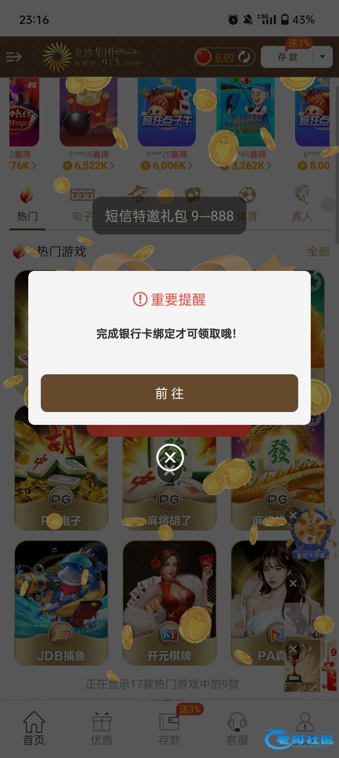 兄弟们快充冲 不用绑定手机号走短信链接账号注册就会弹出来直接可以领取 记得不要绑银行卡绑钱包千万不要绑银行卡短信链接79553.cn
