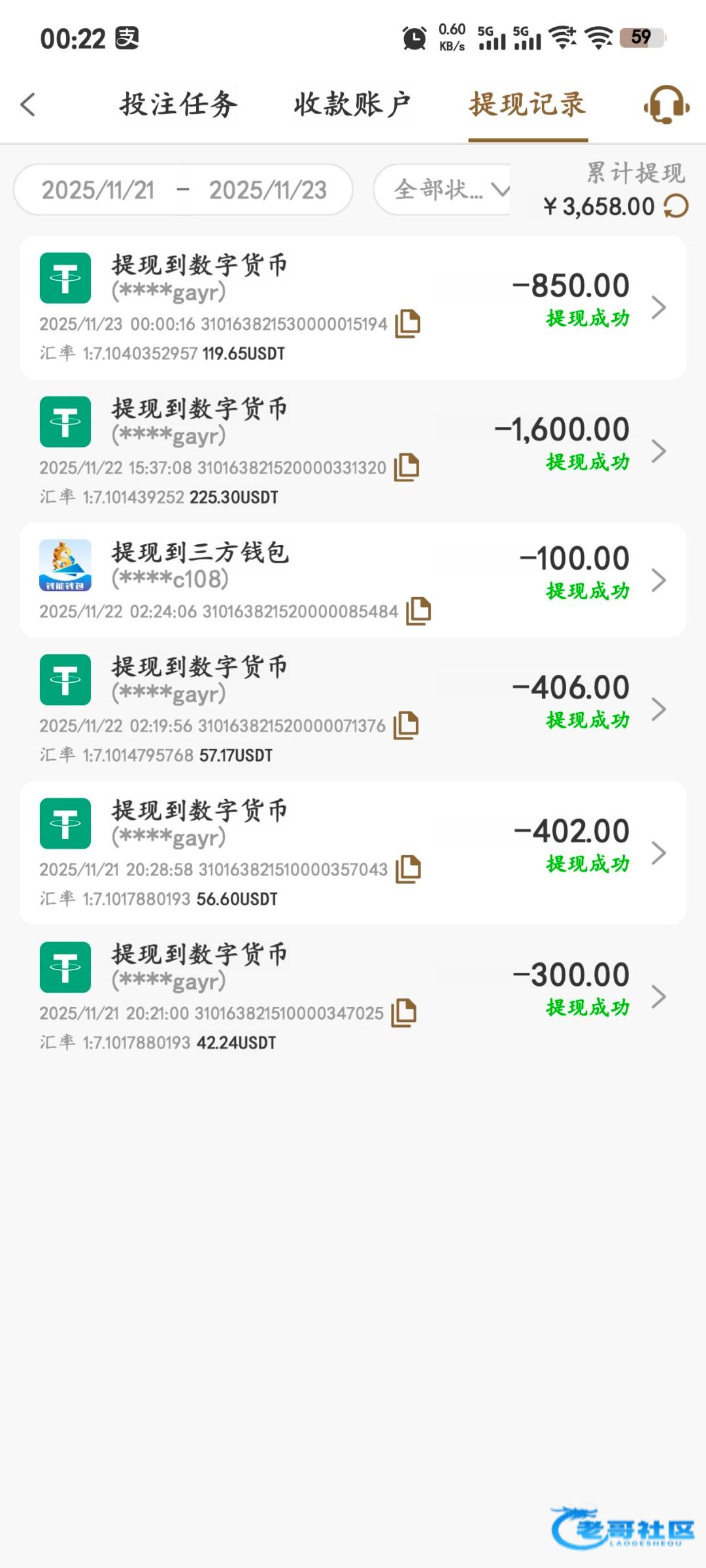 本来挂壁一个月了,21号飞机来了个特邀,我一看注册过了,直接同名同ip注册没想着打出来,结果打出来了,感觉应该提不出,直接提u结果给了。然后继续冲进去撸首存。三天总共白嫖2800,总算好起来了,希望这个月大红,等站起来来给兄弟们发红包,好运来来来。