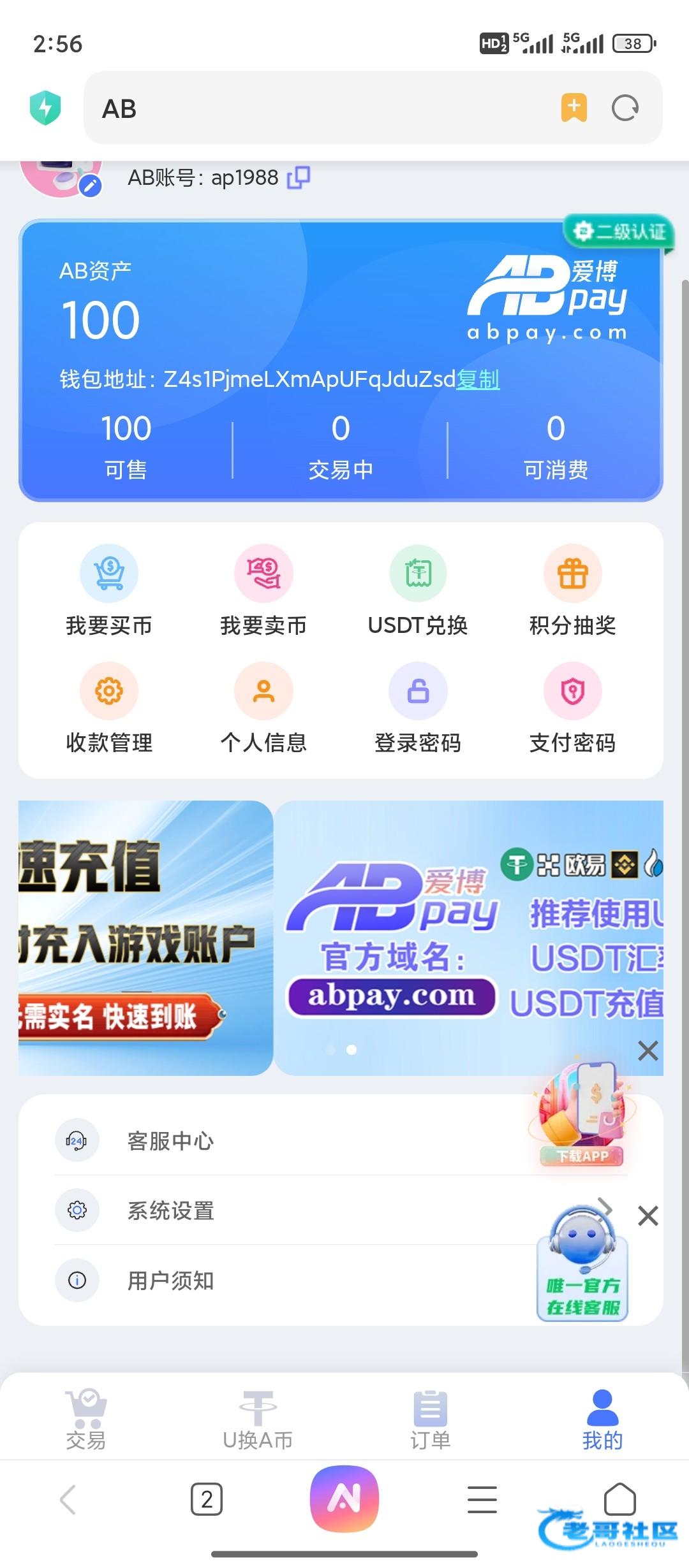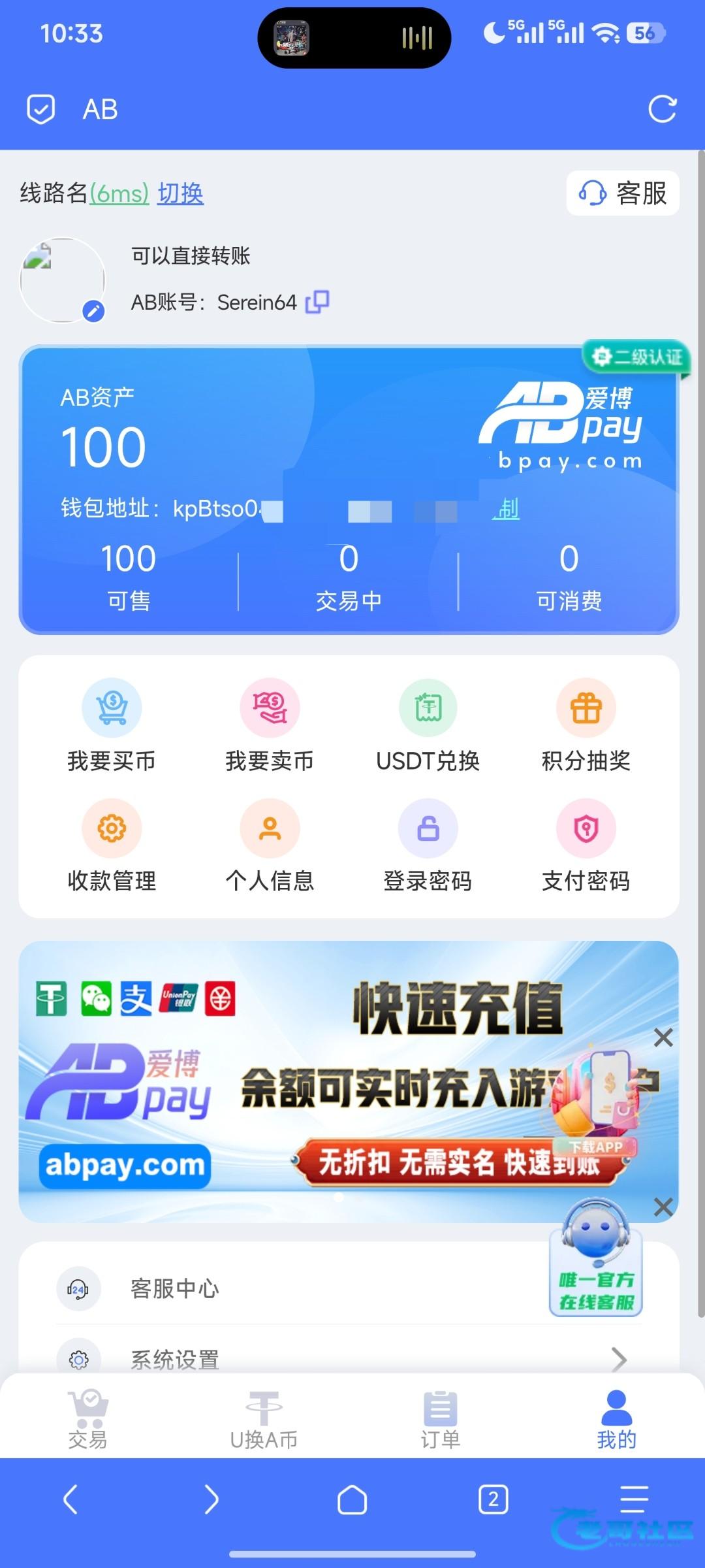续前两天老哥发的262  10+18今天发现充值100后优惠有首单包赔的活动而且是直接赔100abpay的币直接卖掉