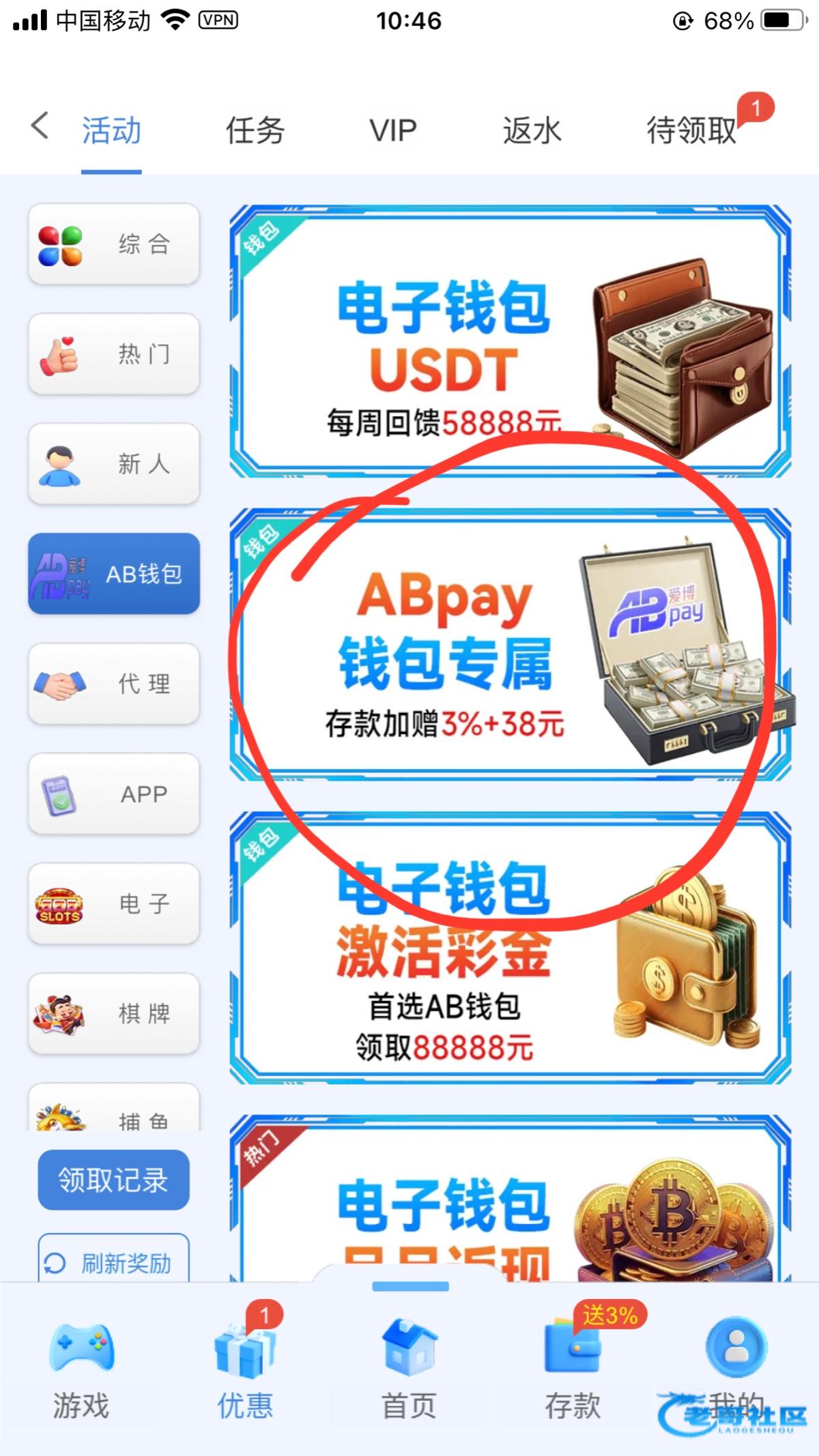 262用AB钱包存过100去申请38我是昨天充值的但是今天去问客服也给了38,在活动里面有次数的可以直接申请不用找客服。这个活动写了要10水,还有老哥别死磕麻将现在这台子麻将基本卡胡的。其他老哥出款的肯定很少麻将打出来的。这台子格局真的很大,祝老哥们爆红