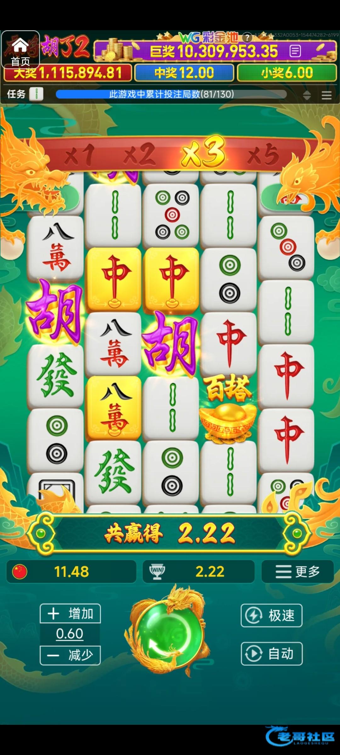 助力有效,早就注册了,现在才是特邀。第一次进胡1.6十倍出来,然后外面普通比胡还多气得我直接拉2块,最后一手以为凉了直接胡中胡出来4张。