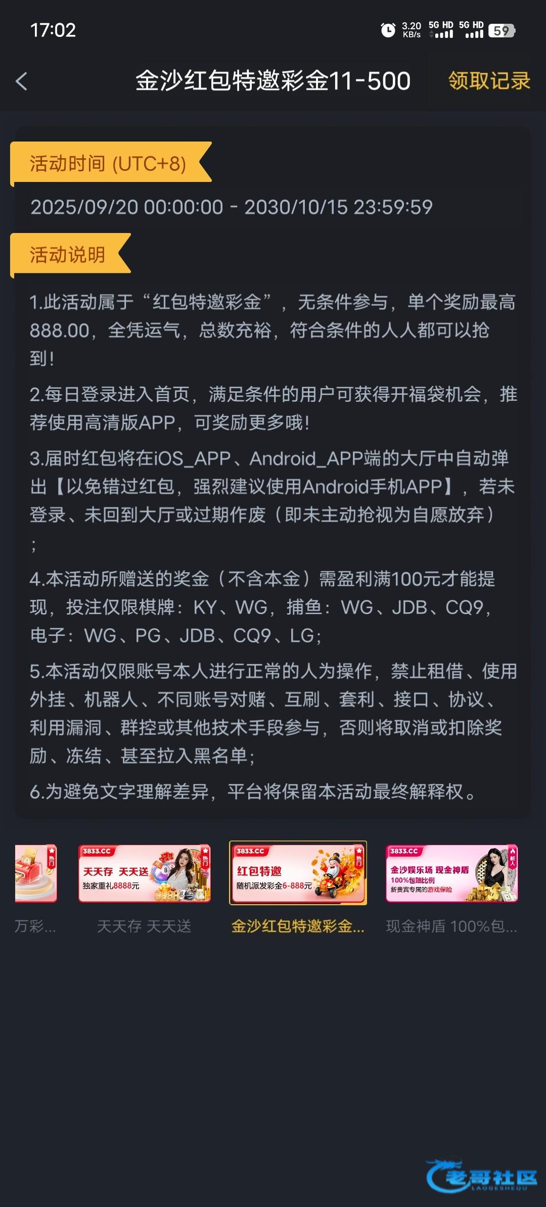 没充值过,一共两个彩金,领福袋要绑定银行卡,领特邀回归要帮第三方钱包,但是不充值的话只能绑定一个收款方式,所以没充值只能领其中一个,需要下载app,能领取福袋的会自动弹出,特邀回归需要手动领取,都在活动里网址3833.com