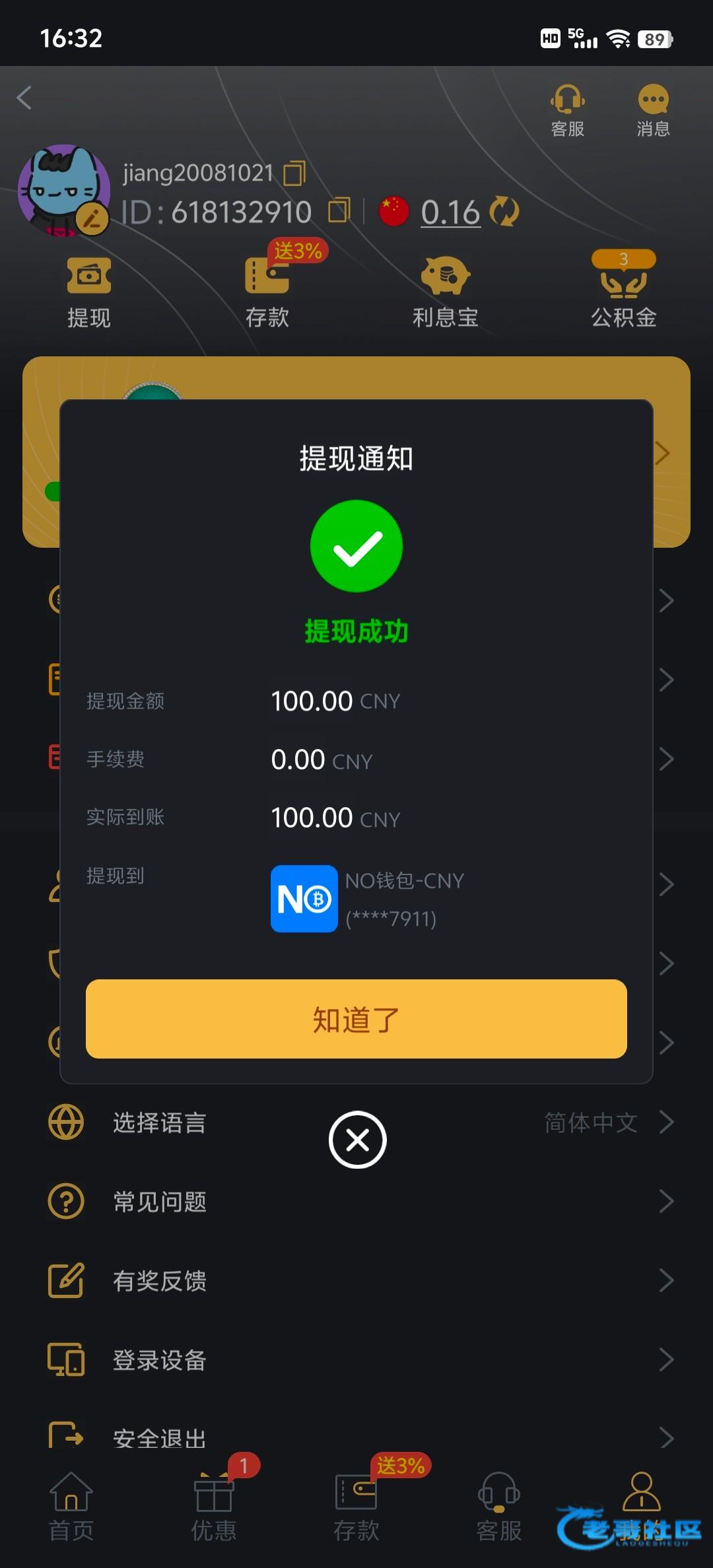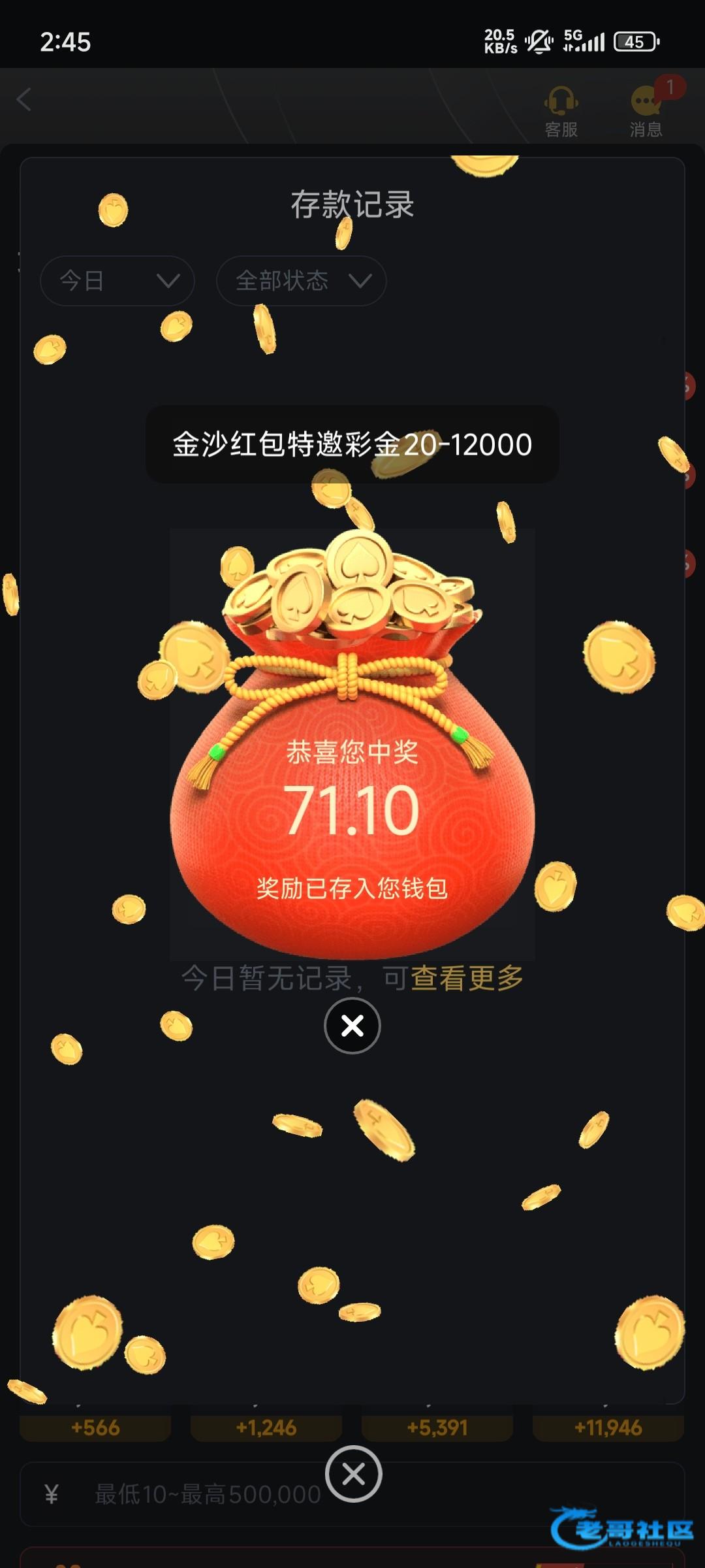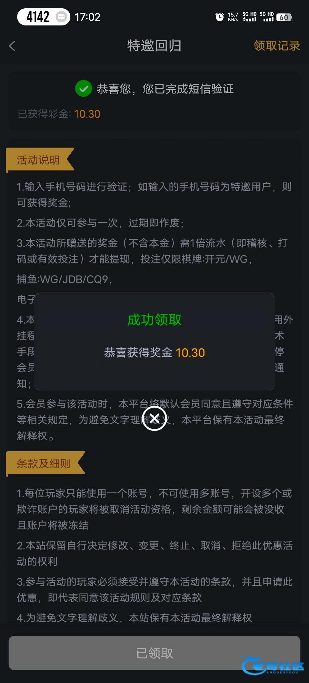 3点多给我发了个短信,我注册完了回归特邀不是,但是福袋给了我十一,我充了个10块,玩了不到50的流水,就提了100