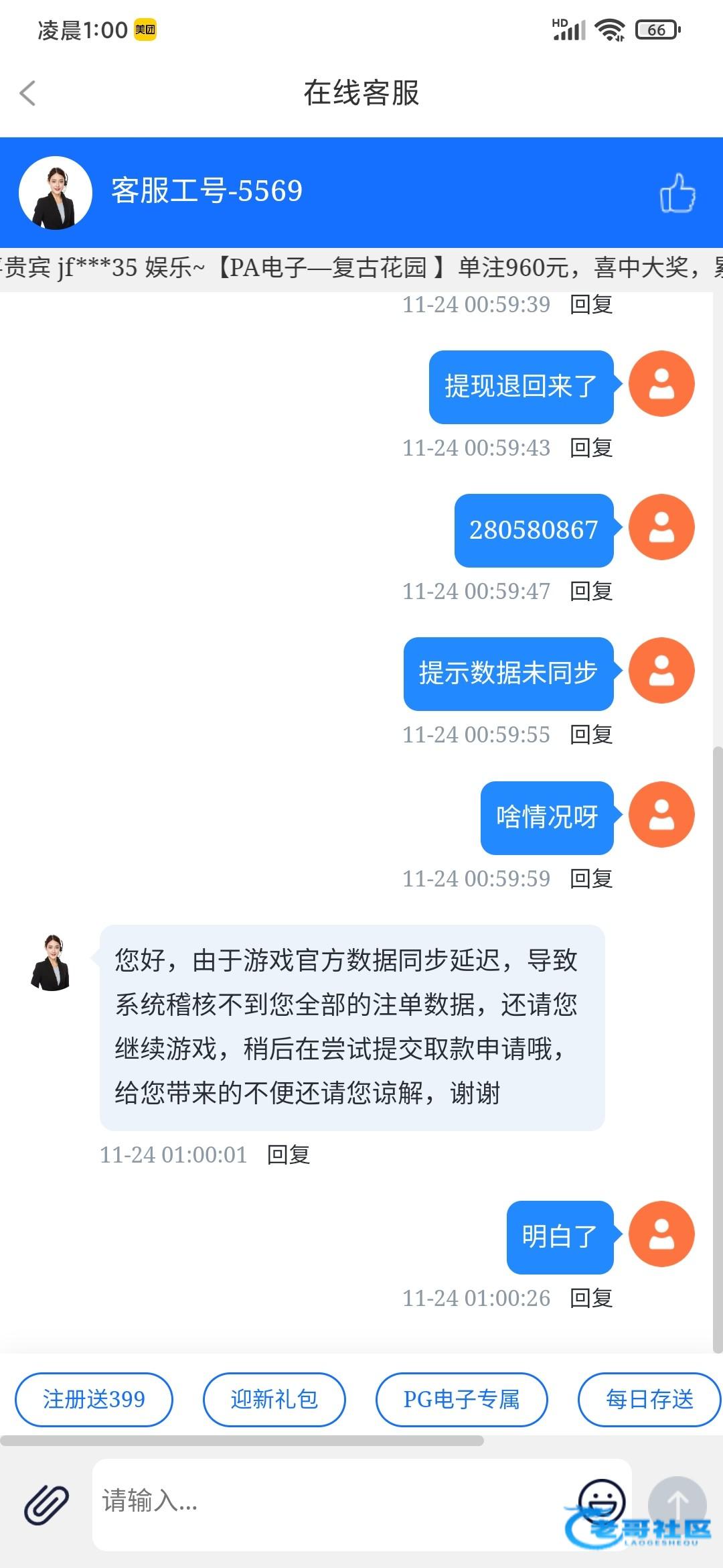 估计是个黑的,充10块输了,过了12点领19打上500一直注单未同步。让继续游戏,打了两个小时流水都打了四五千了都一直不给提现