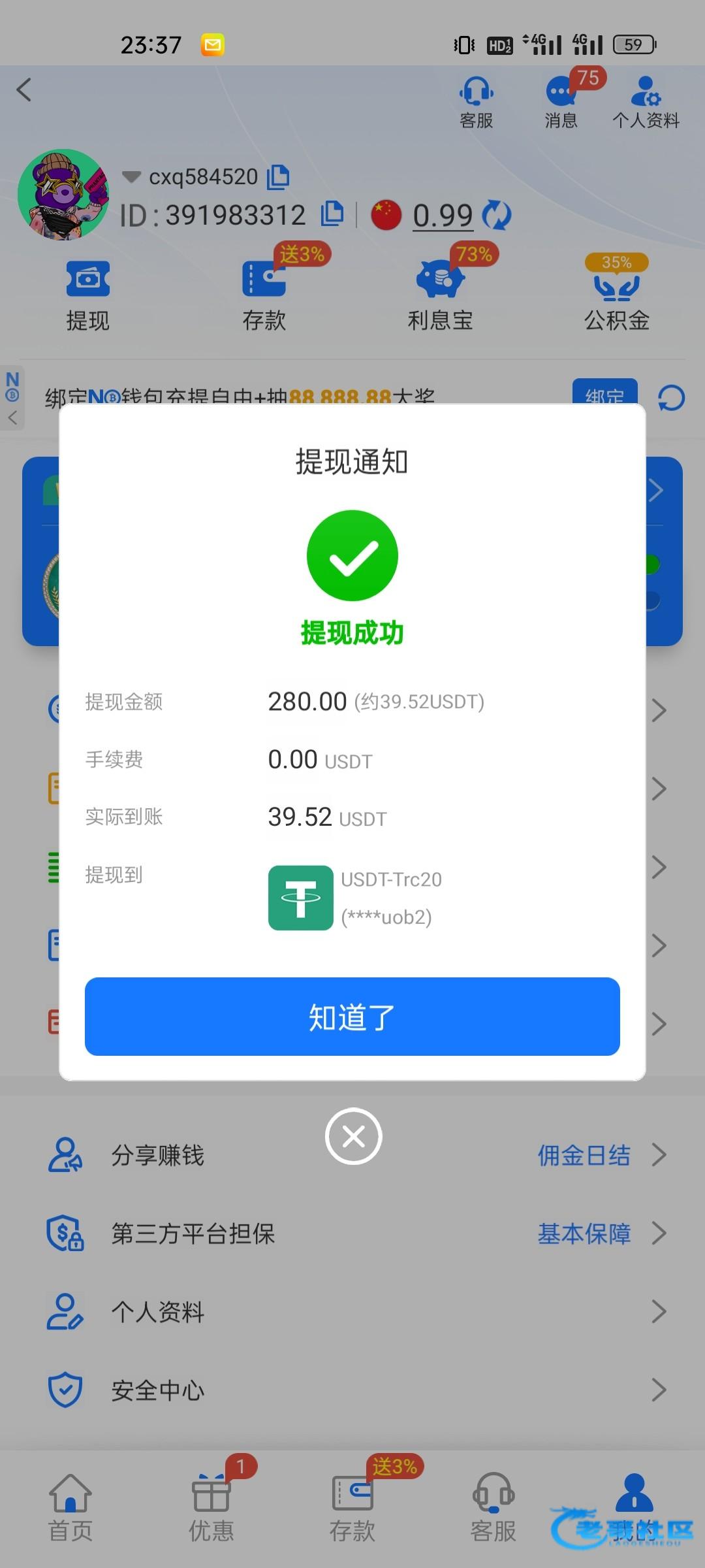 下午女王50一拉进夺宝不给钱 现在0.4给了 不知道能不能出款
