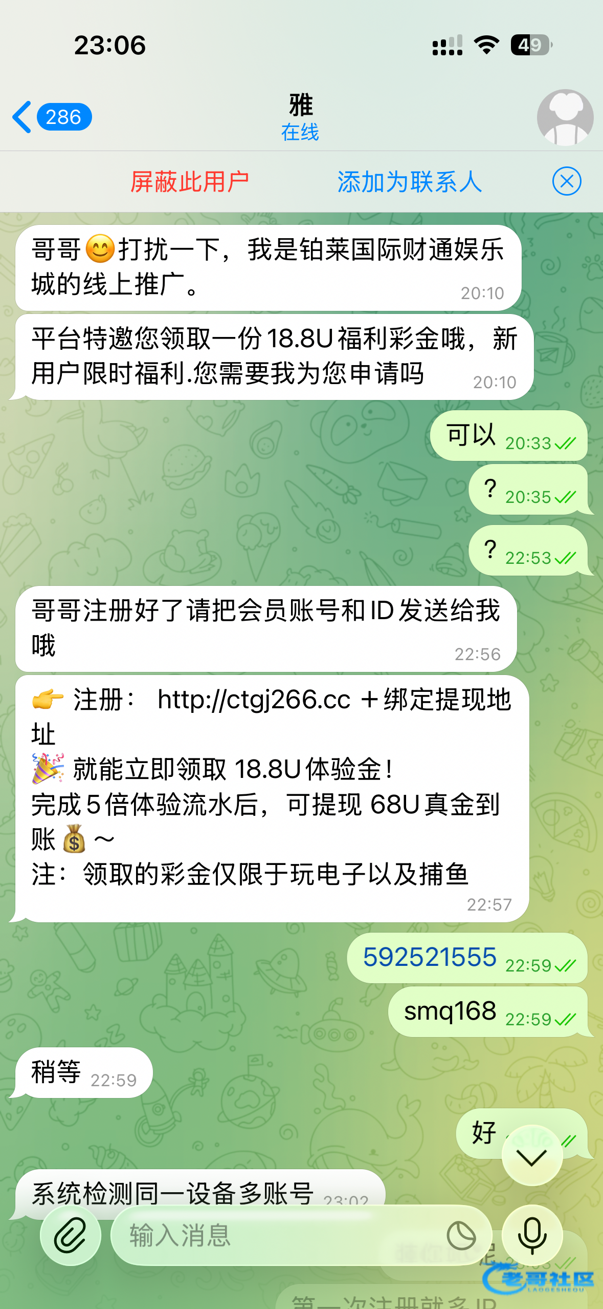 tm的老子还以为特邀来了 哪个畜生妈的假装客服骗我注册又要手机号的狗日的闲的就去找个牢行不行草泥马的