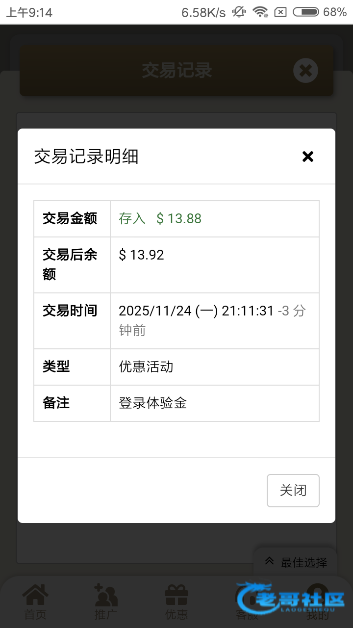 我也领到了13.88 名字是登录体验金,注册一年了,一分没充过,我都不记得这个台子印象里