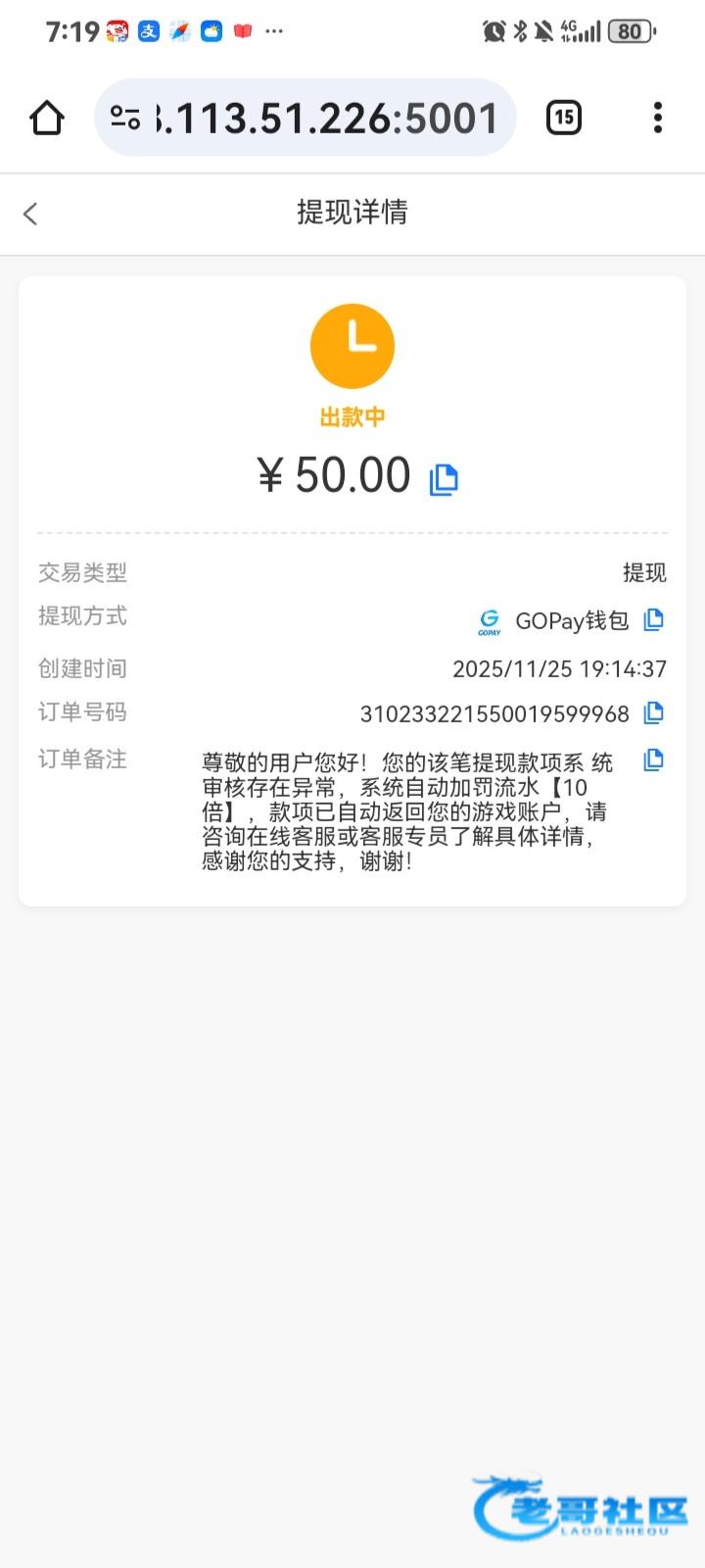 @打狗棒 ,充了50,本来说退本金的,后来本金都不退,直接罚10倍流水