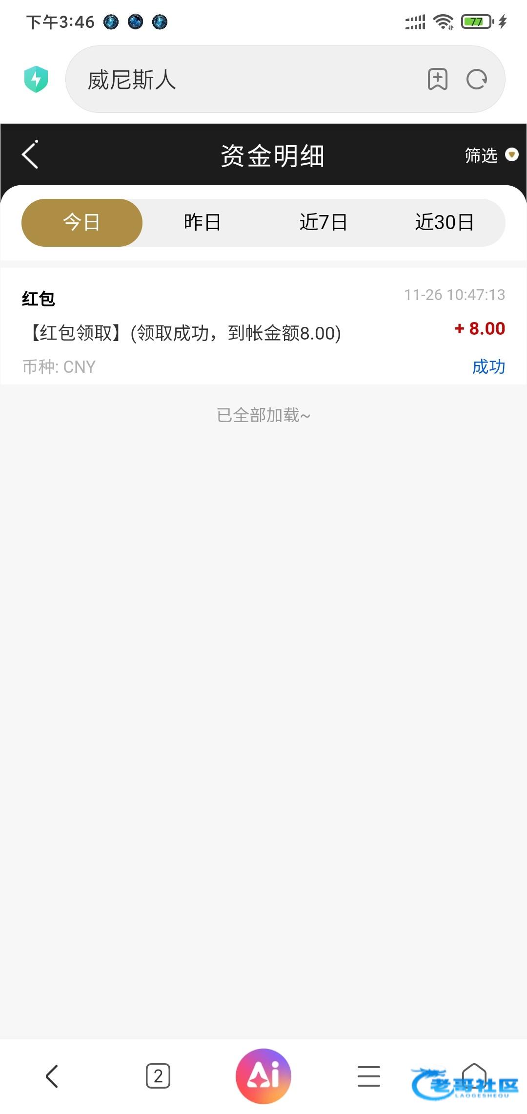 3年前被冻结 最后一笔提4k左右没到号没了 不过这破台以前bug很多 红包抢过一次1100➕