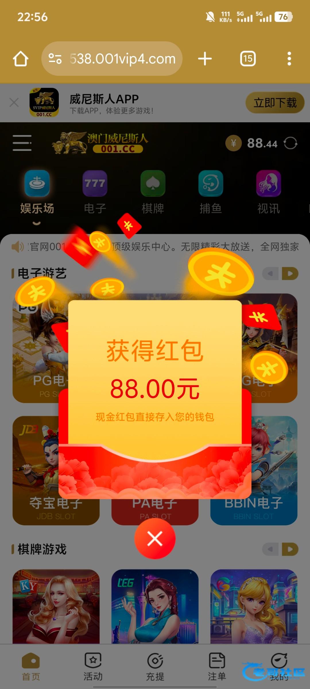 001.cc我是接到电话说有免费彩金领取,登录自动弹出红包.有号的可以上去看看