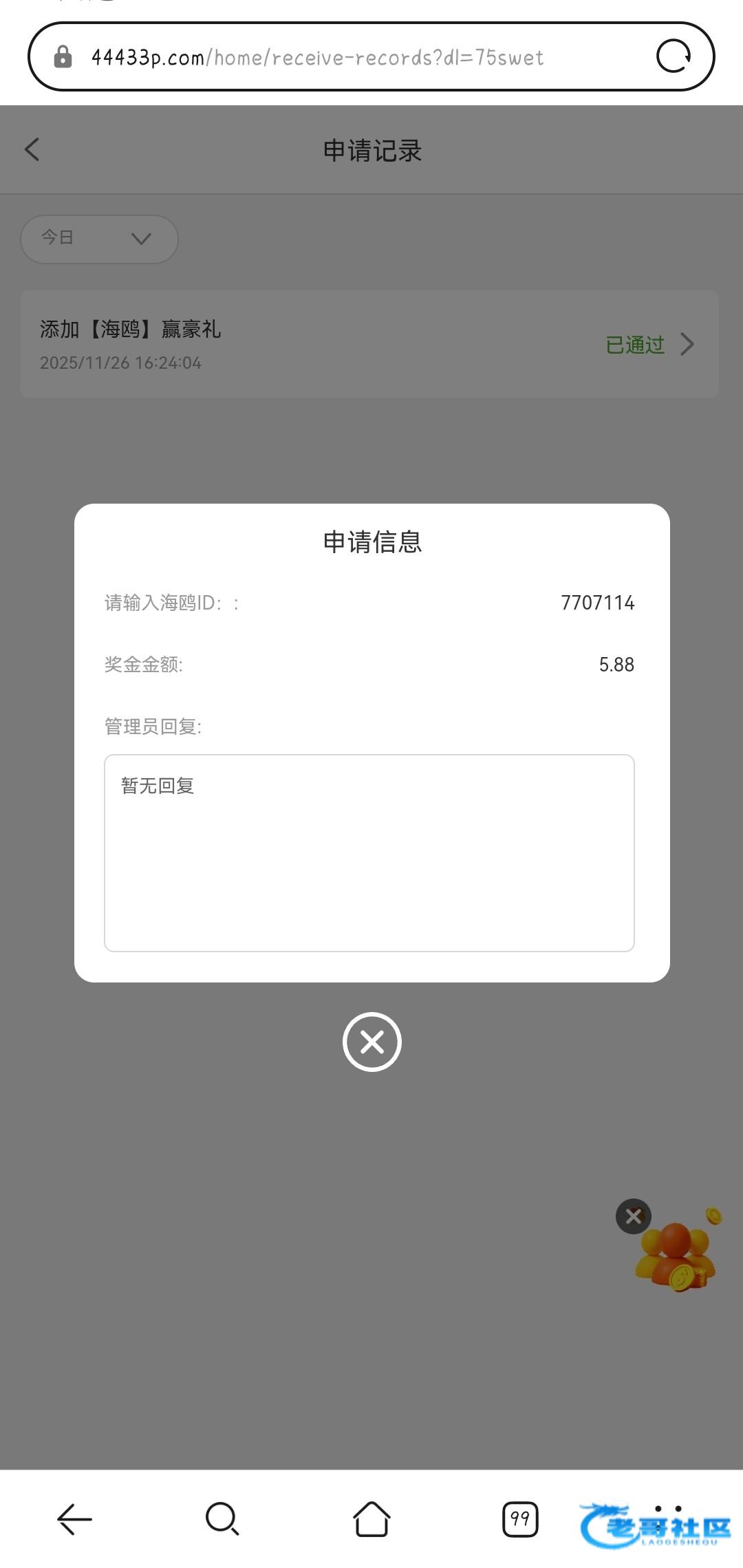 网址44433.com,充值过的去下载海鸥申请彩金,我送了5.88