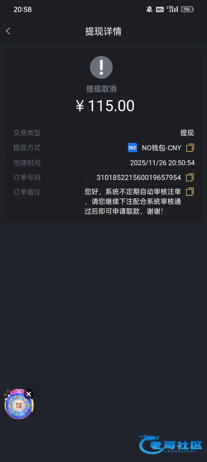 打到250,提现冻结