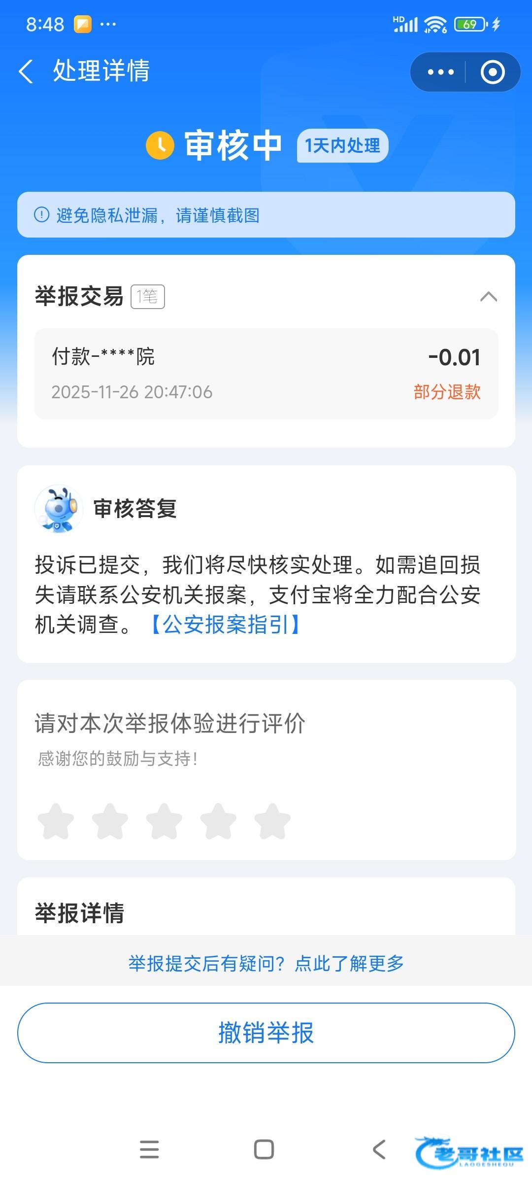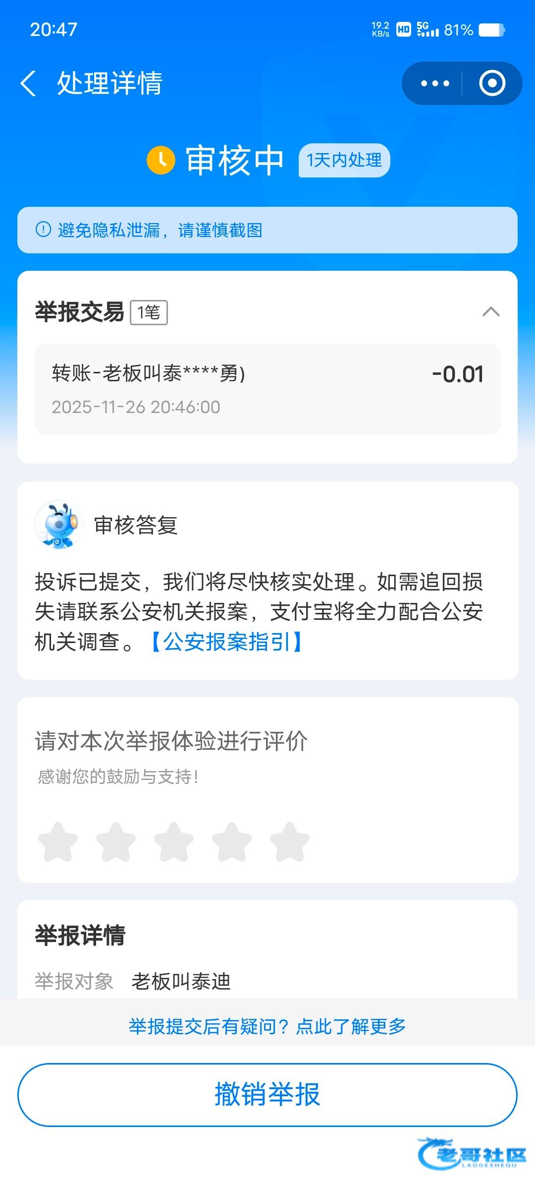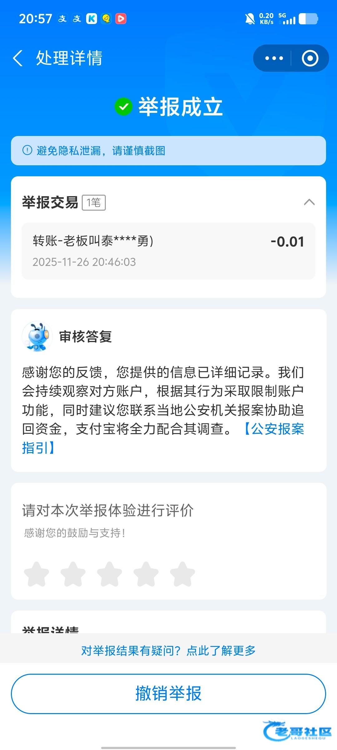 直接找支付宝举报的。我的钱能地址是 qn1d0b0d445a1b12d5