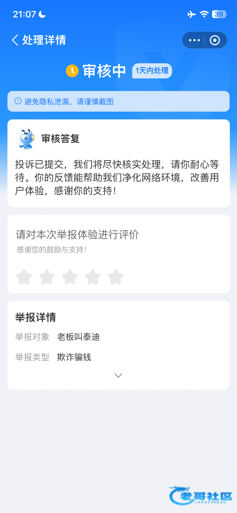 人呢??怎么等一天了都没收到,我投诉了,截图也发了