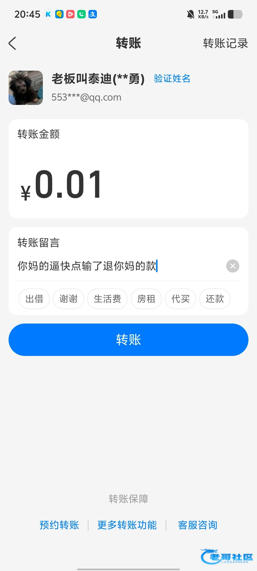 老哥申请个猪脚饭吧 我钱能账号被封了 只能用支付宝收款 谢谢老哥了 我今天短信轰炸他手机号