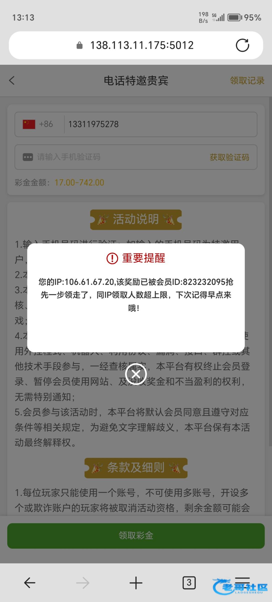 他妈的742领取了3个17拉pg没一个能打上50块全部挂壁,他妈的怀疑狗庄锁我IP名字了,1468接到电话显示不是特邀他妈的!