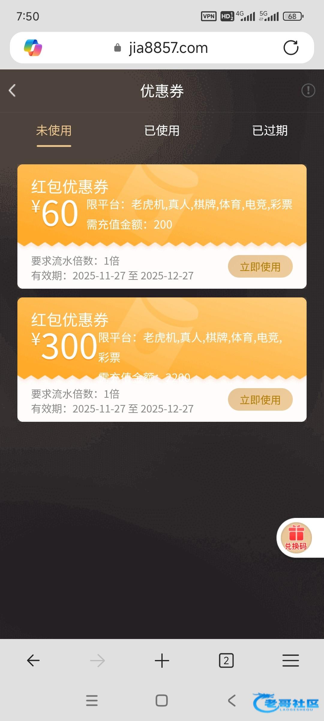 喜欢打优惠券的老哥有福了,注册以来累计充值1000流水10,000以上,点VIP自助晋升可以领18+8+18网站https://jia8857.com/