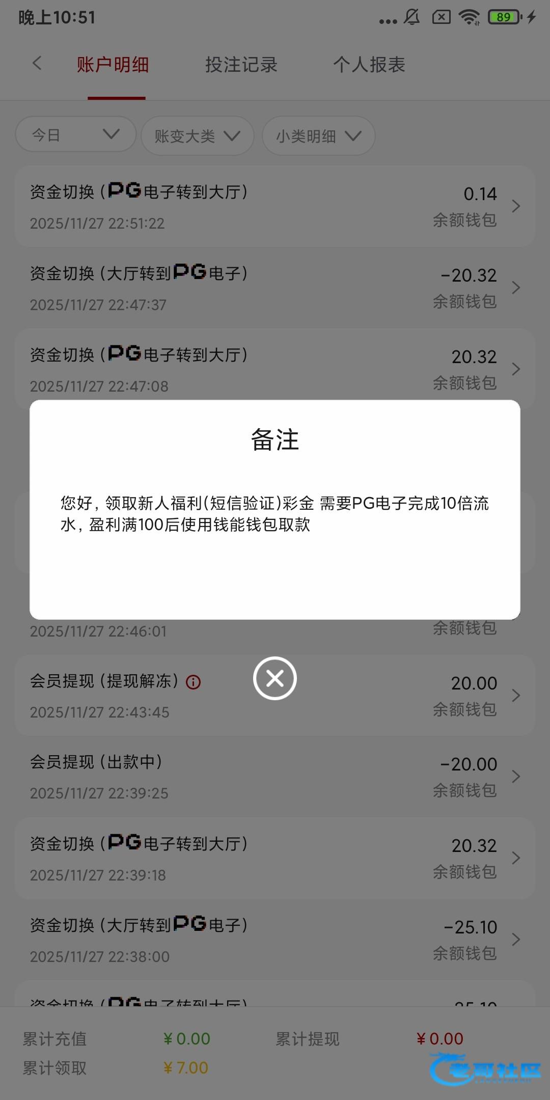 我还以为送7块不限制游戏呢,结果只能玩PG,再多送我30我也打不出来