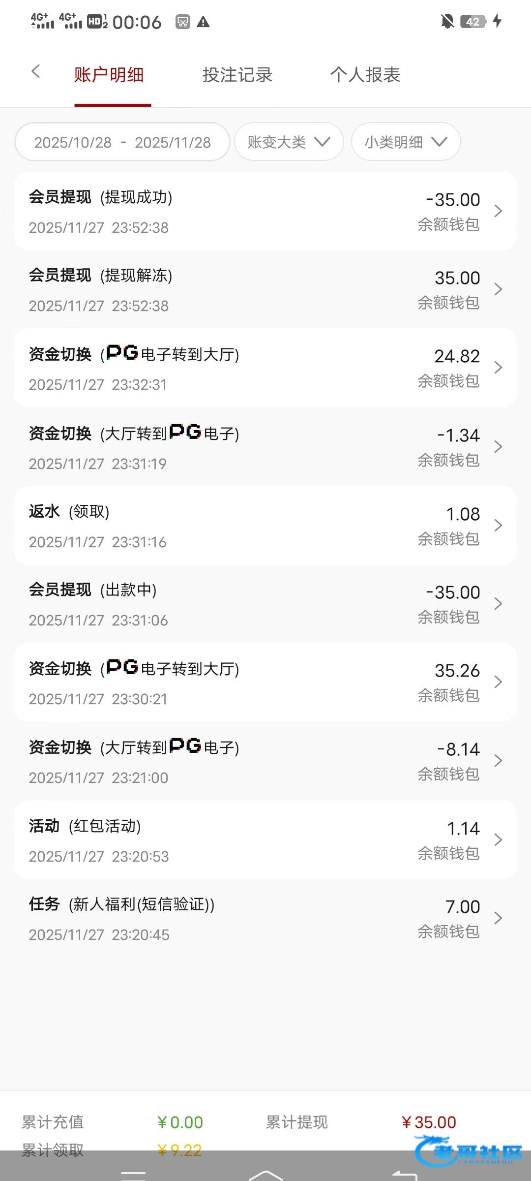 充6块提了100,到账了