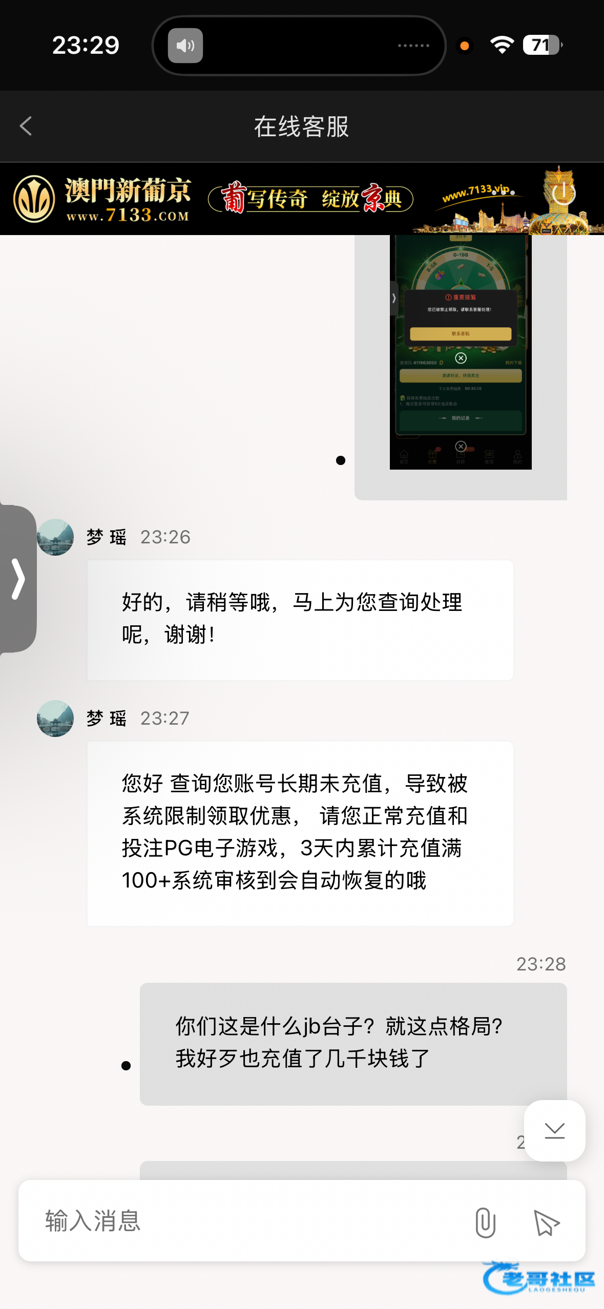 七月 ▶ 可新 不常娱乐封优惠了,要充值100联系客服解开 2月前