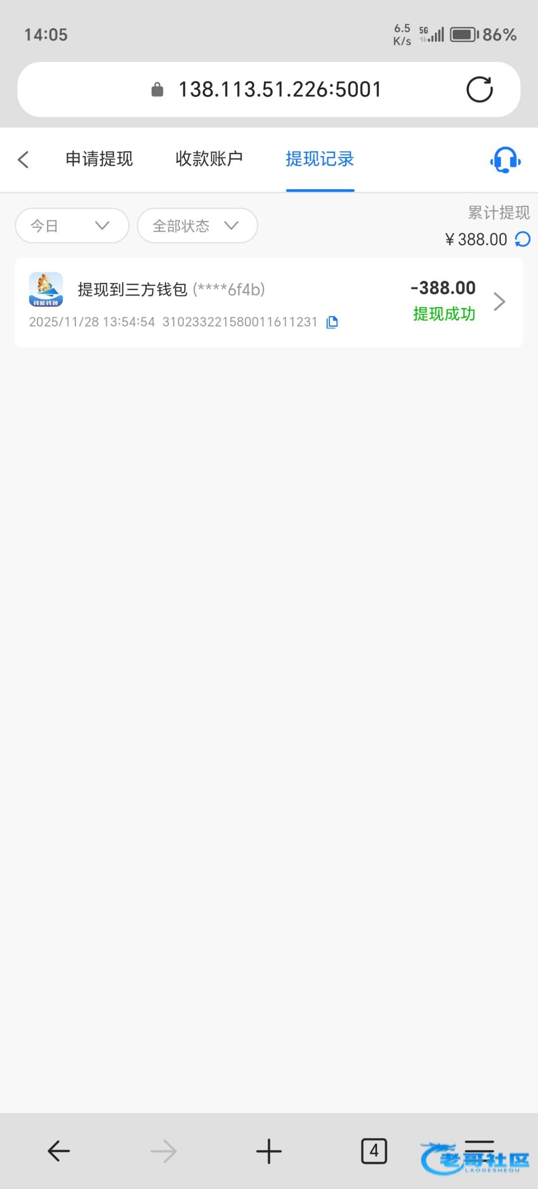 就一个帐号,说我多帐号,特邀领的38磨了整整一天,好不容易干到388,提款被黑了,大家别冲值,避雷