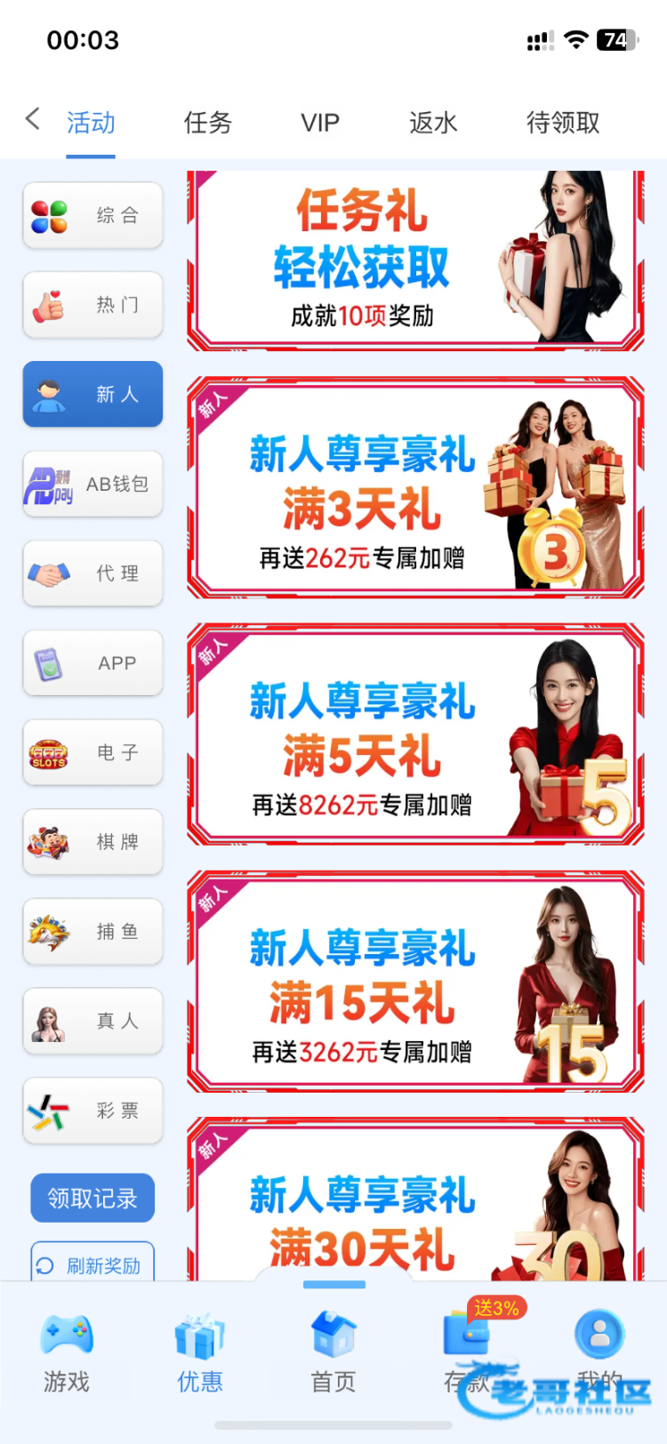 增加了新人3天和5天的活动,满足可以去领取一下
