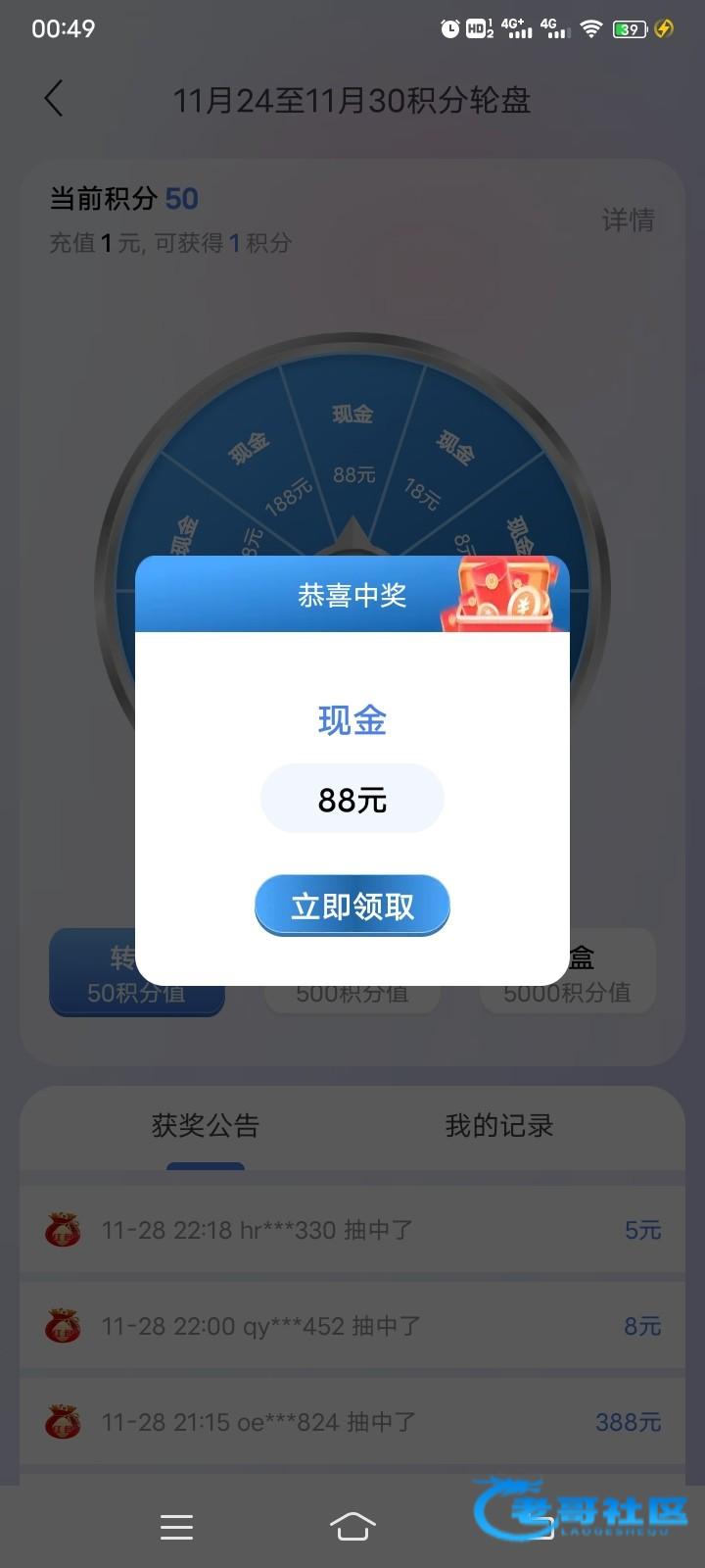 我500积分一下最高才68,57分中了188?