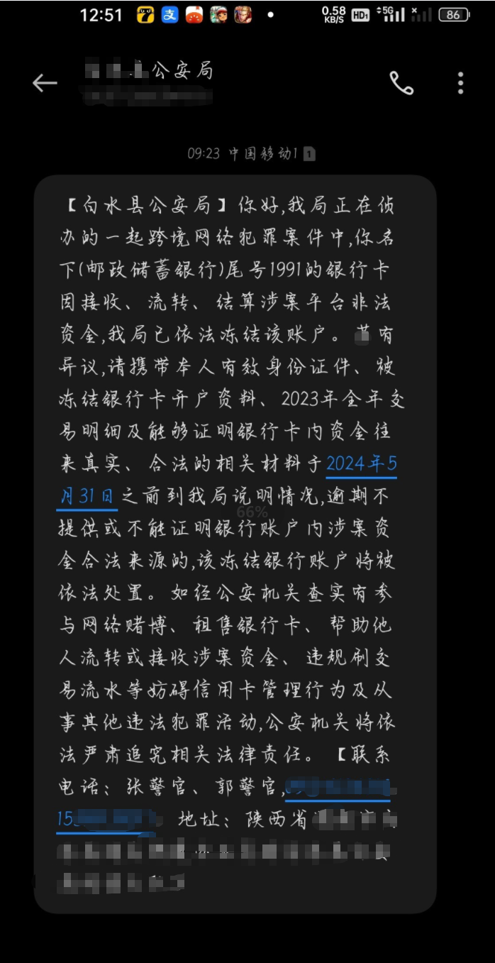 3578498762 ▶ huo666 我这是被异地公安冻结,我不是陕西的 2024-5-9