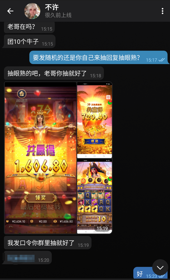 这位兄弟今天红了几千,找到老哥安排给兄弟们抽10牛,散散财,转转运,越来越好!