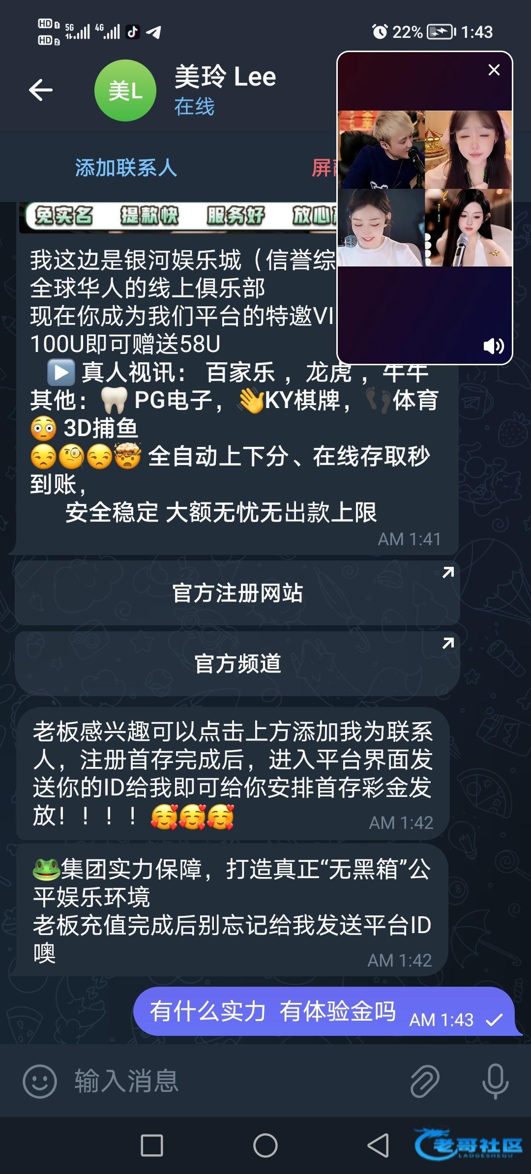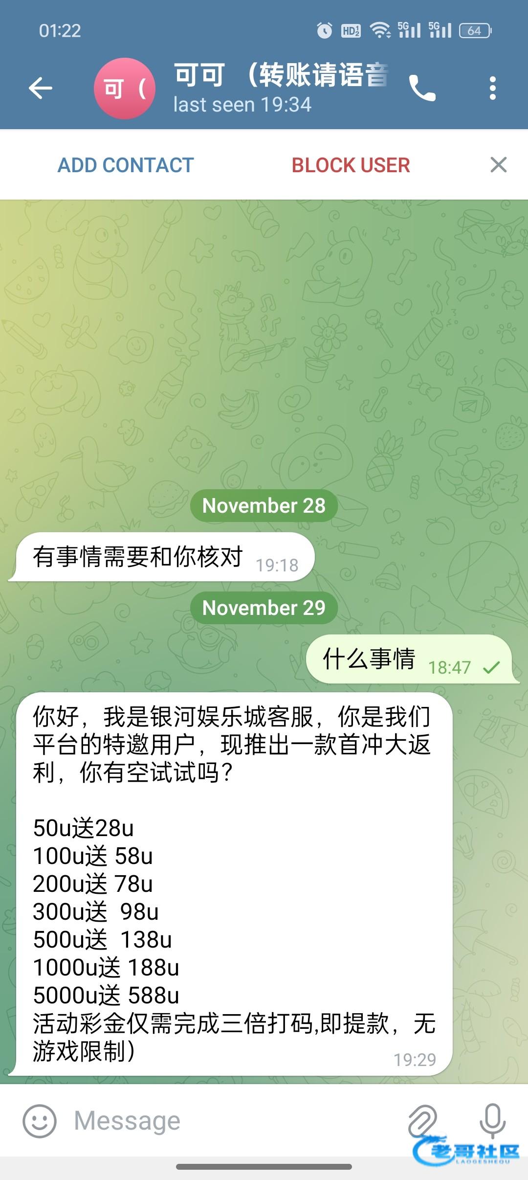 老哥们打开✈️看看有没有类似的人找你 如果是银河娱乐城特邀能送28u 五倍流水不限制游戏亲测可提 因为他✈️账号隐藏了 所以没法发出来让各位加好友碰 有收到类似信息可以聊