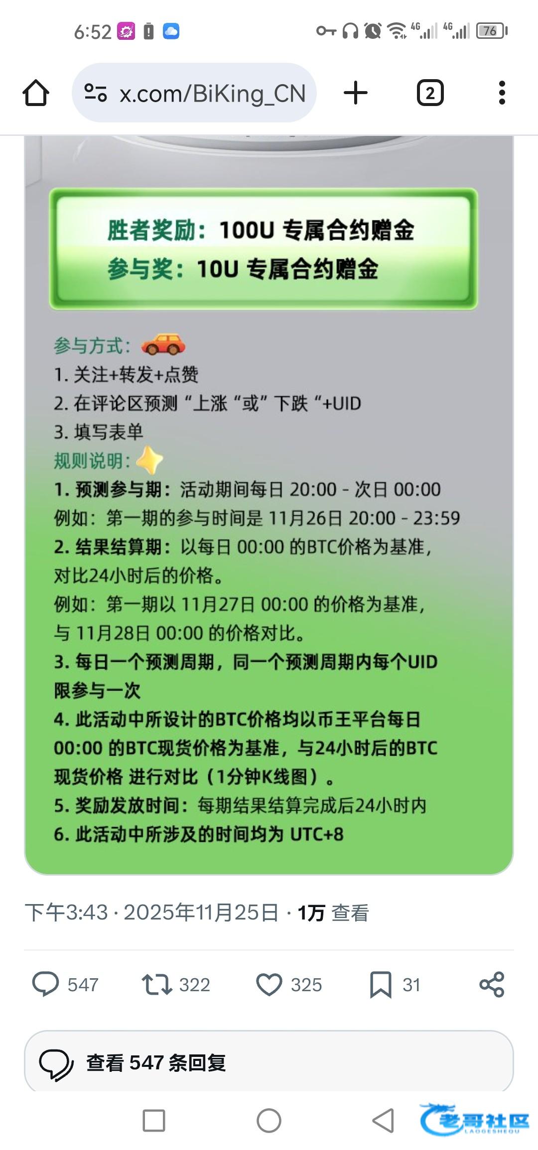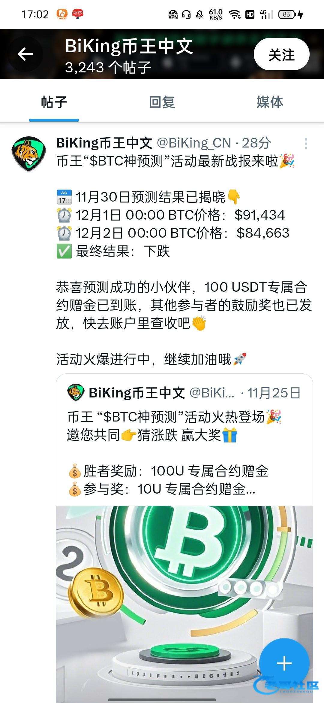 推特帮忙转发一下。 btc 跌 uid 720955 给牛子