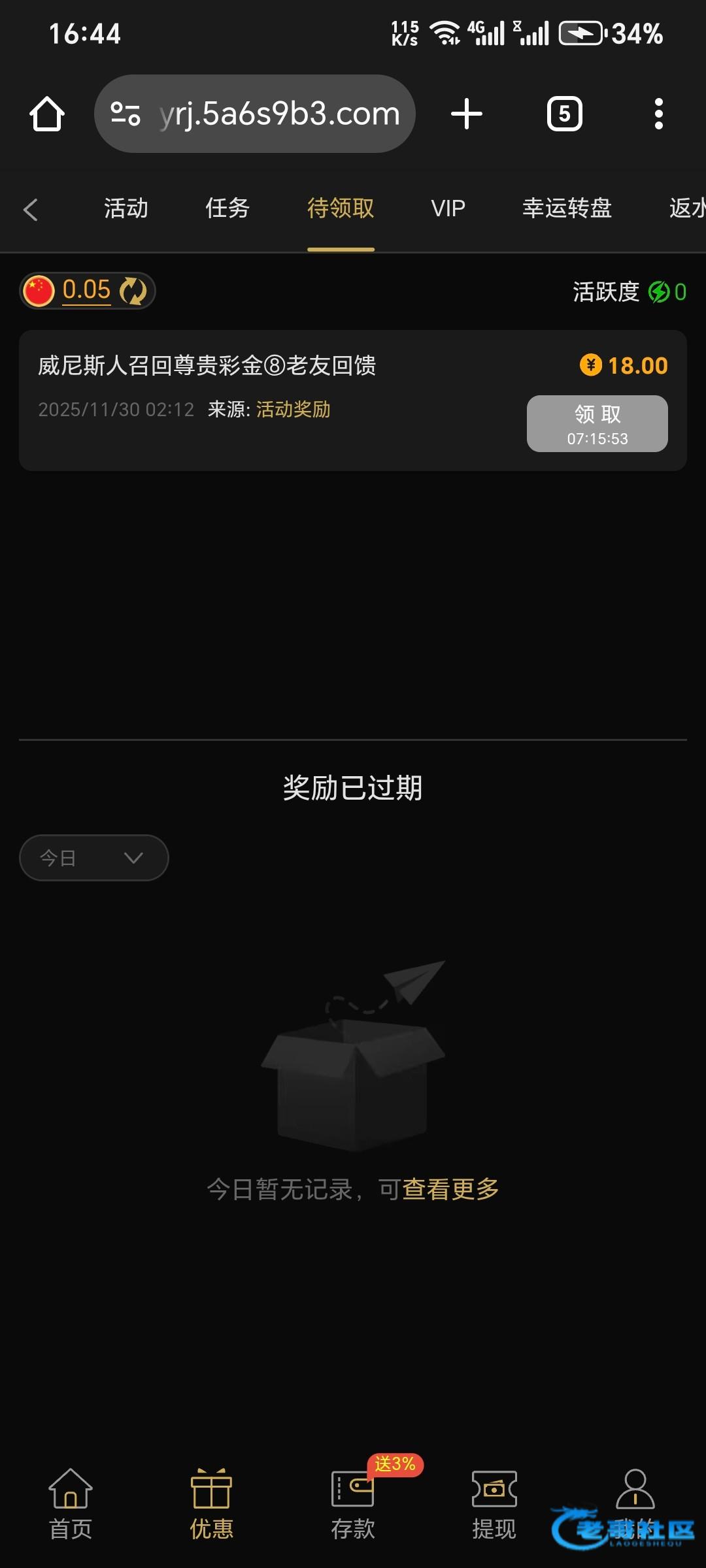 等一下领取就说。要充值。