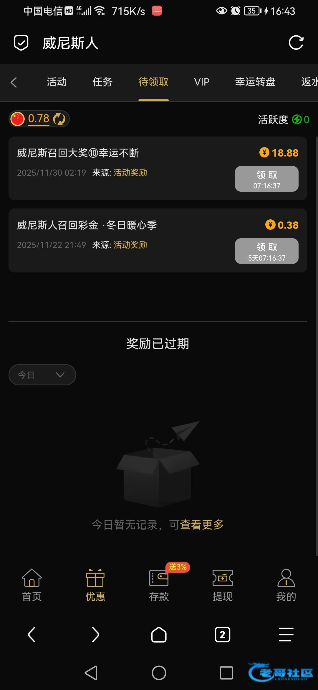 不知道是否需要充值过,我两个台几个月没有充值了,2号可领。392.com 806.com